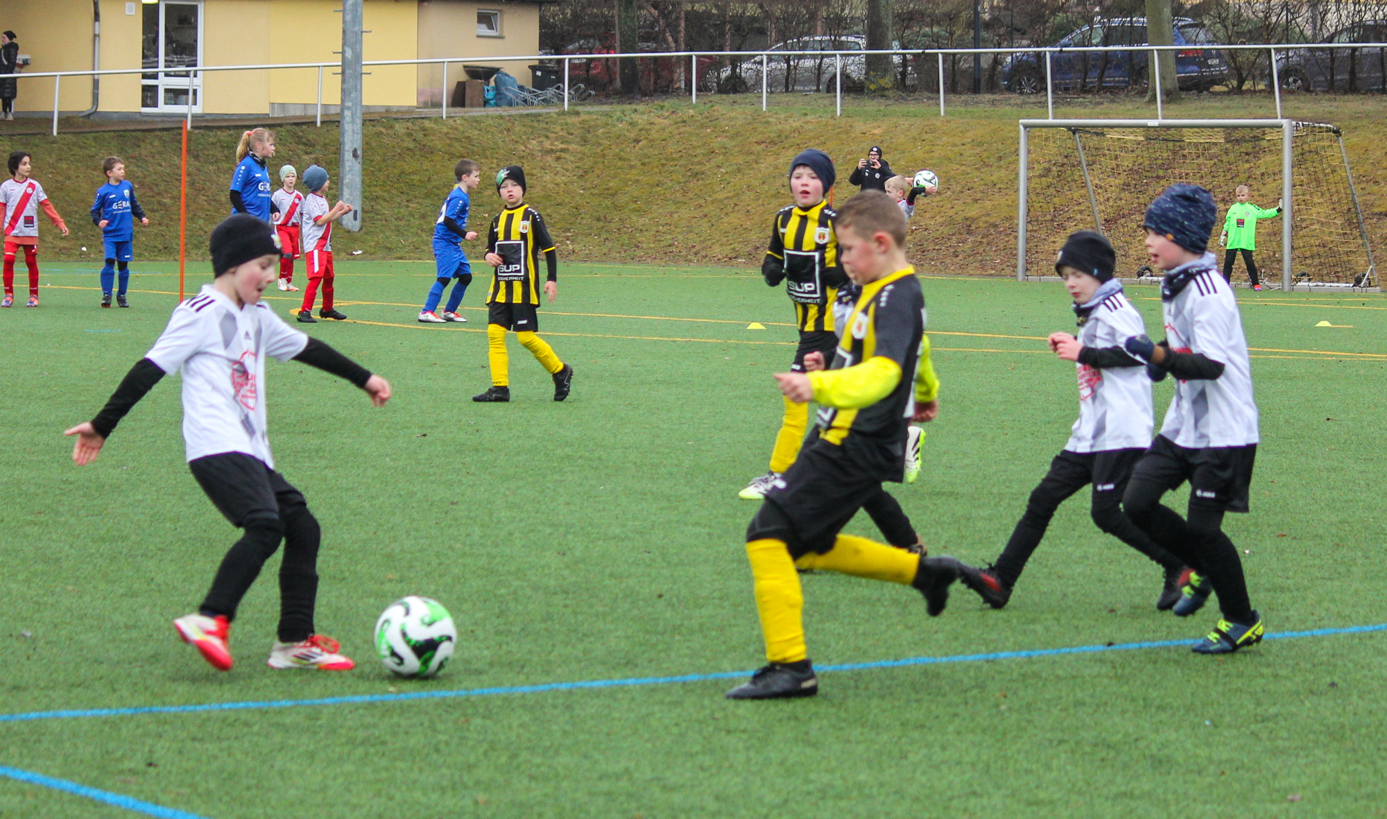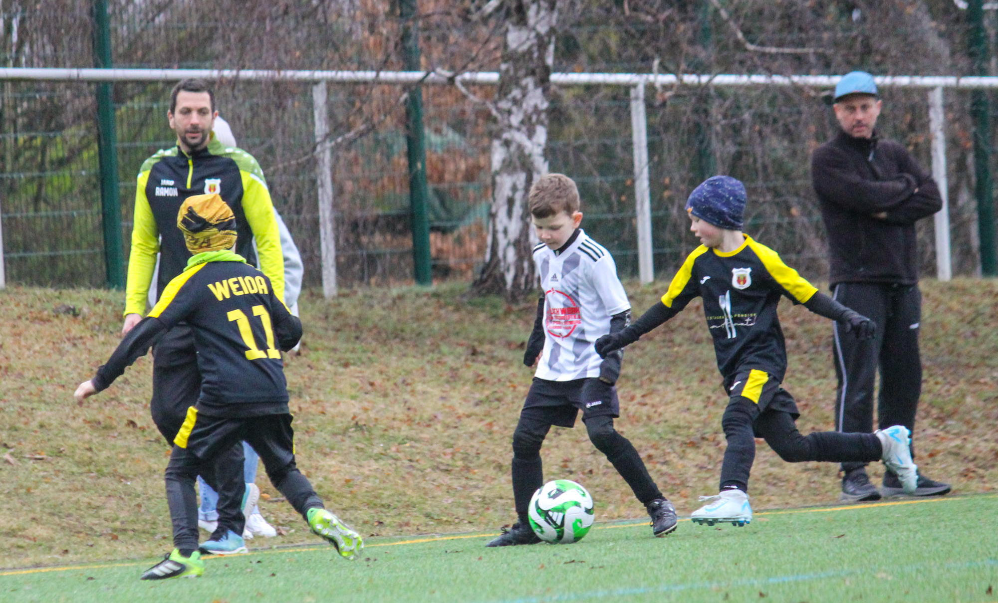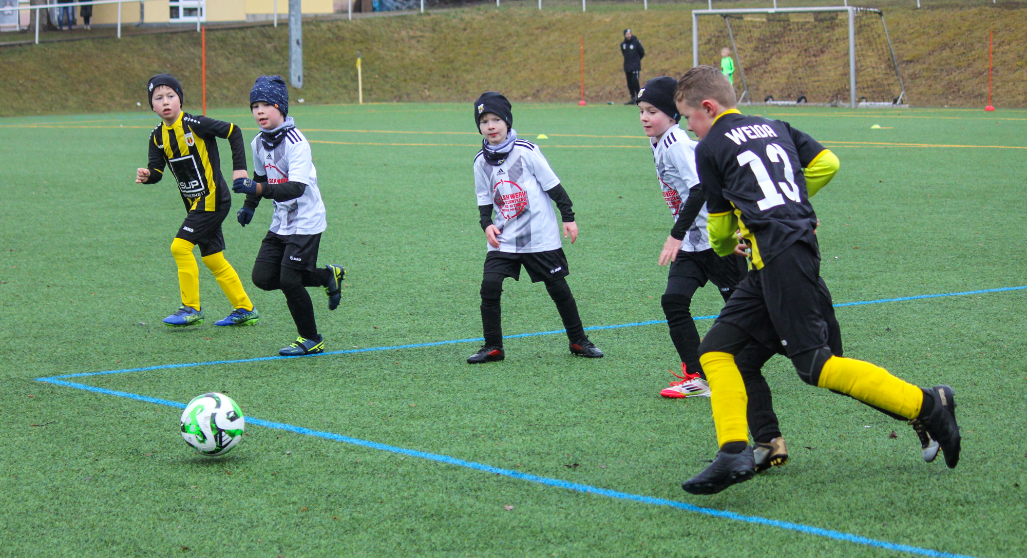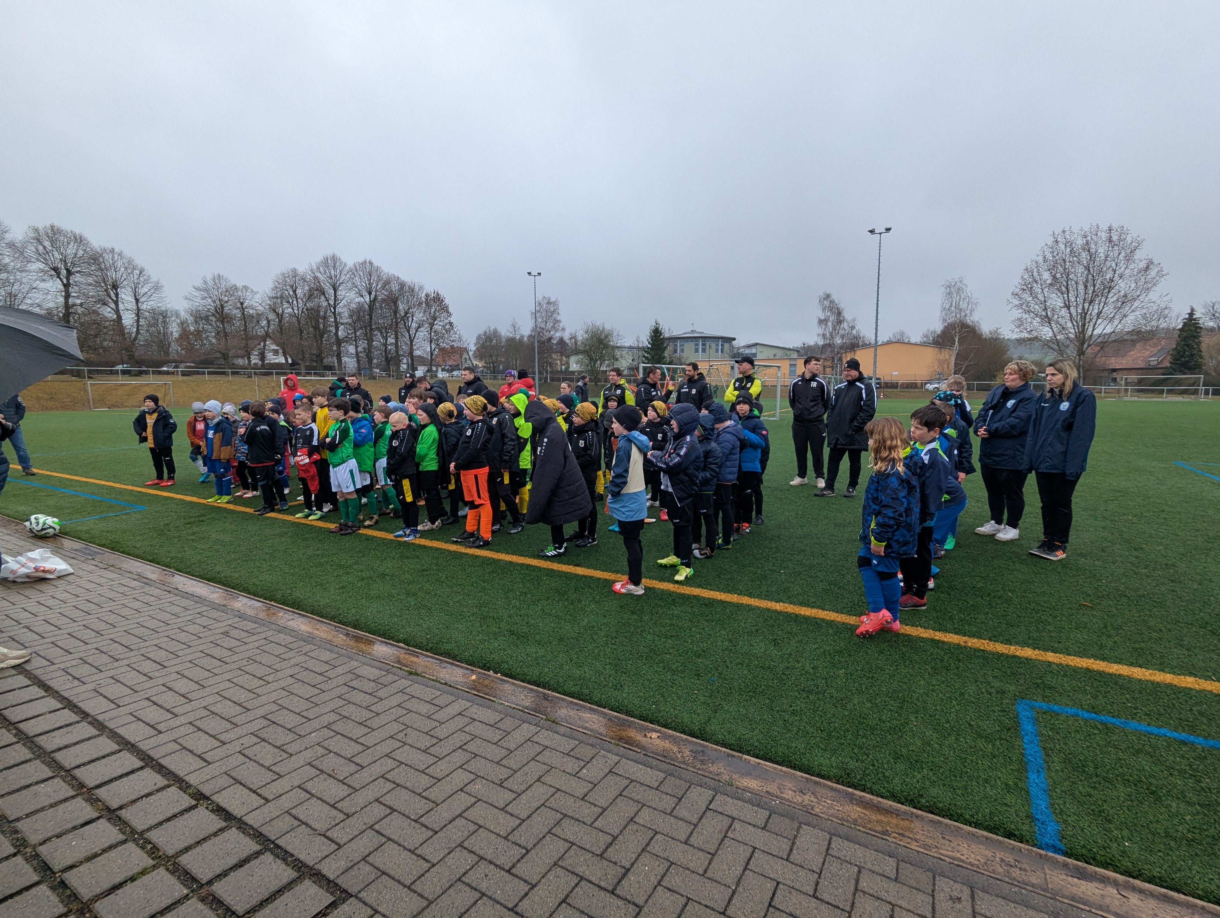 Den ersten Einsatz unter freiem Himmel stand am Sonntag für unsere F-Junioren auf dem Plan. Bei nasskalten Wetter und früher Zeit machten sich unsere Jungs auf den Weg zum Turnier des FC Thüringen Weida. 12 Mannschaften im Modus Jeder gegen Jeden sprachen für ein ordentlich Programm.