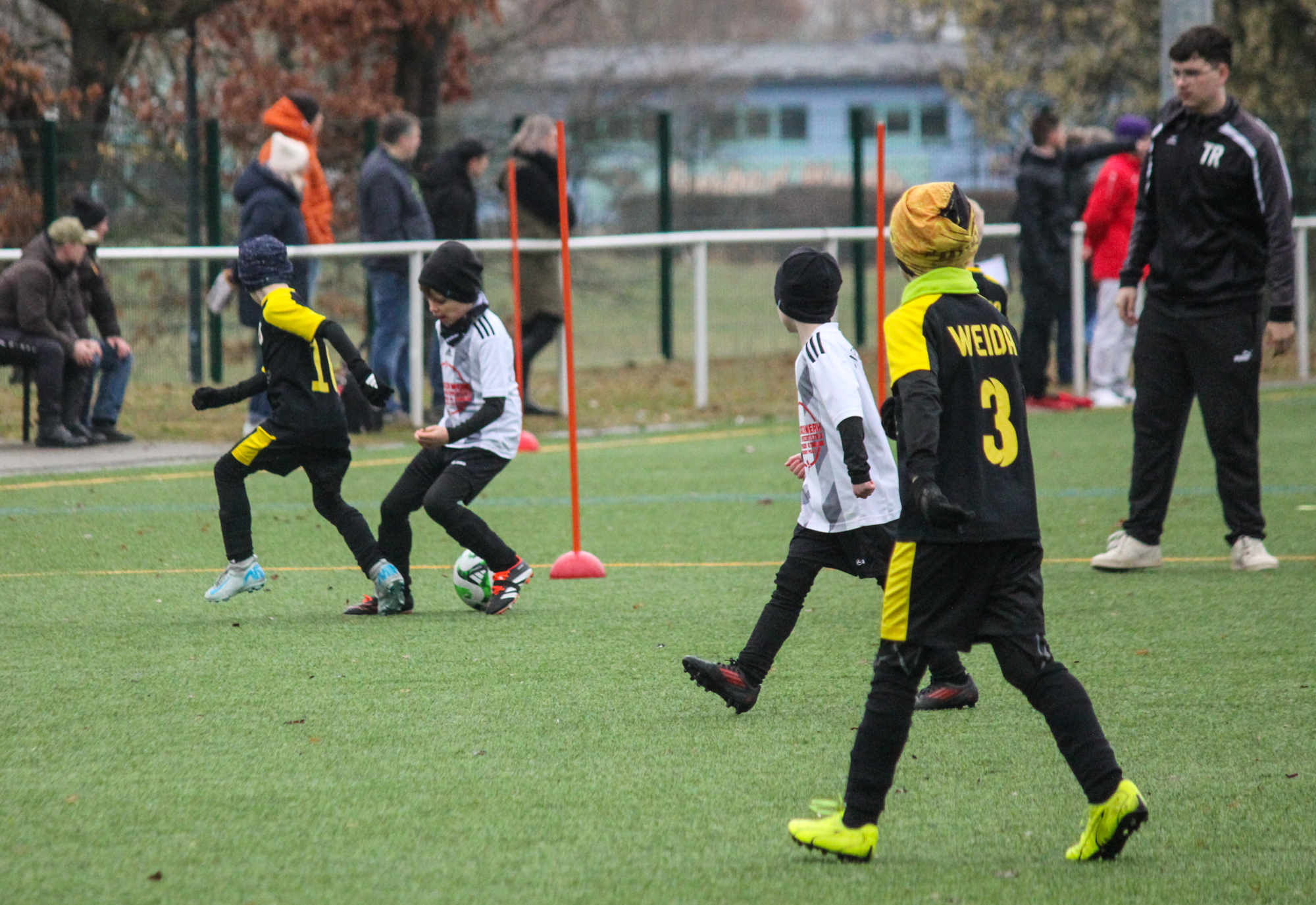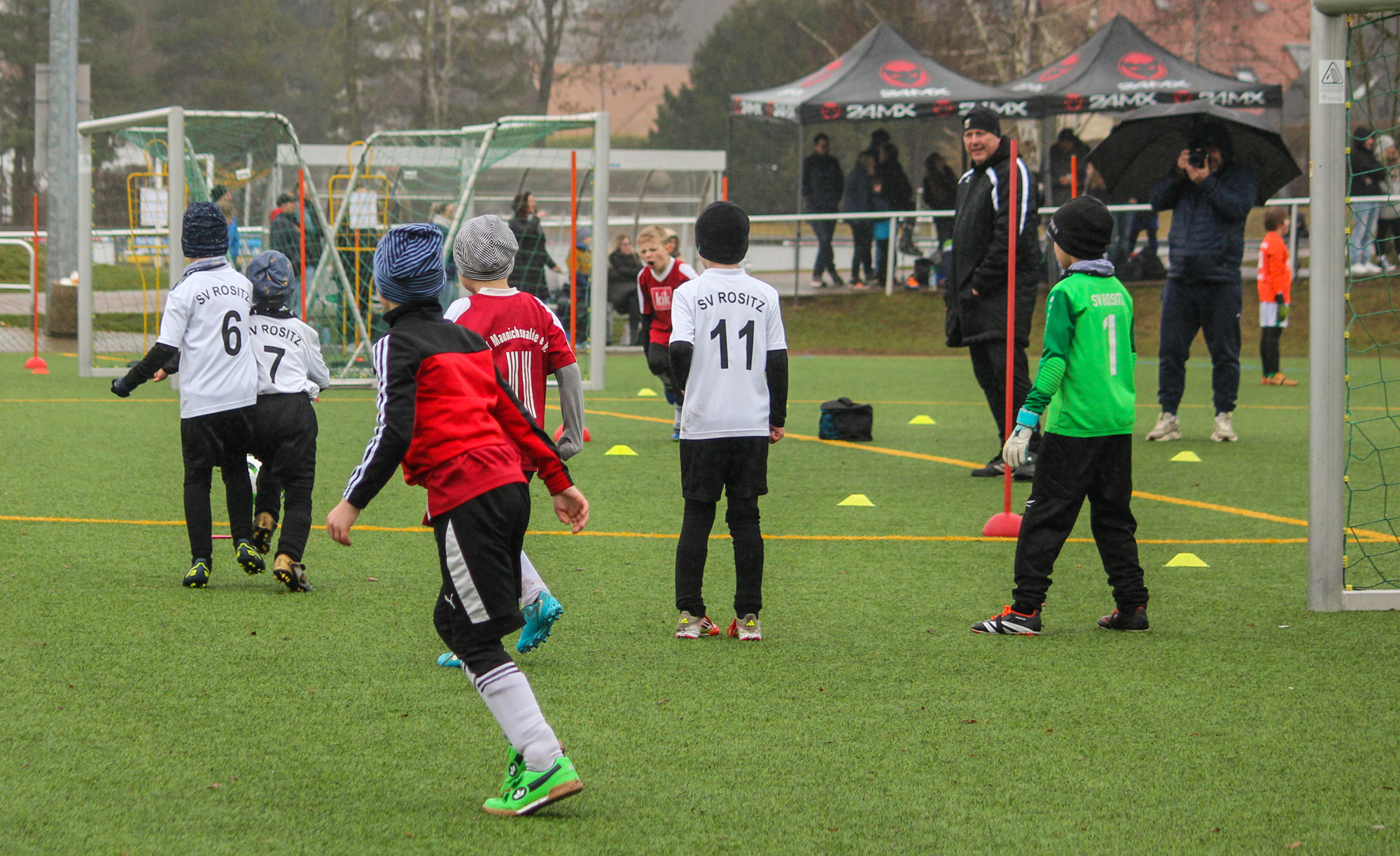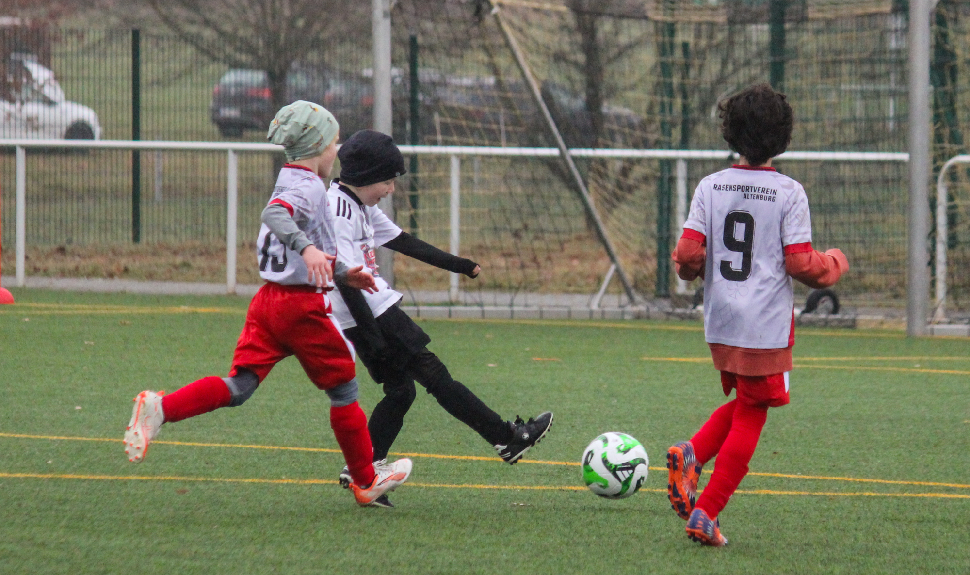 Den ersten Einsatz unter freiem Himmel stand am Sonntag für unsere F-Junioren auf dem Plan. Bei nasskalten Wetter und früher Zeit machten sich unsere Jungs auf den Weg zum Turnier des FC Thüringen Weida. 12 Mannschaften im Modus Jeder gegen Jeden sprachen für ein ordentlich Programm.