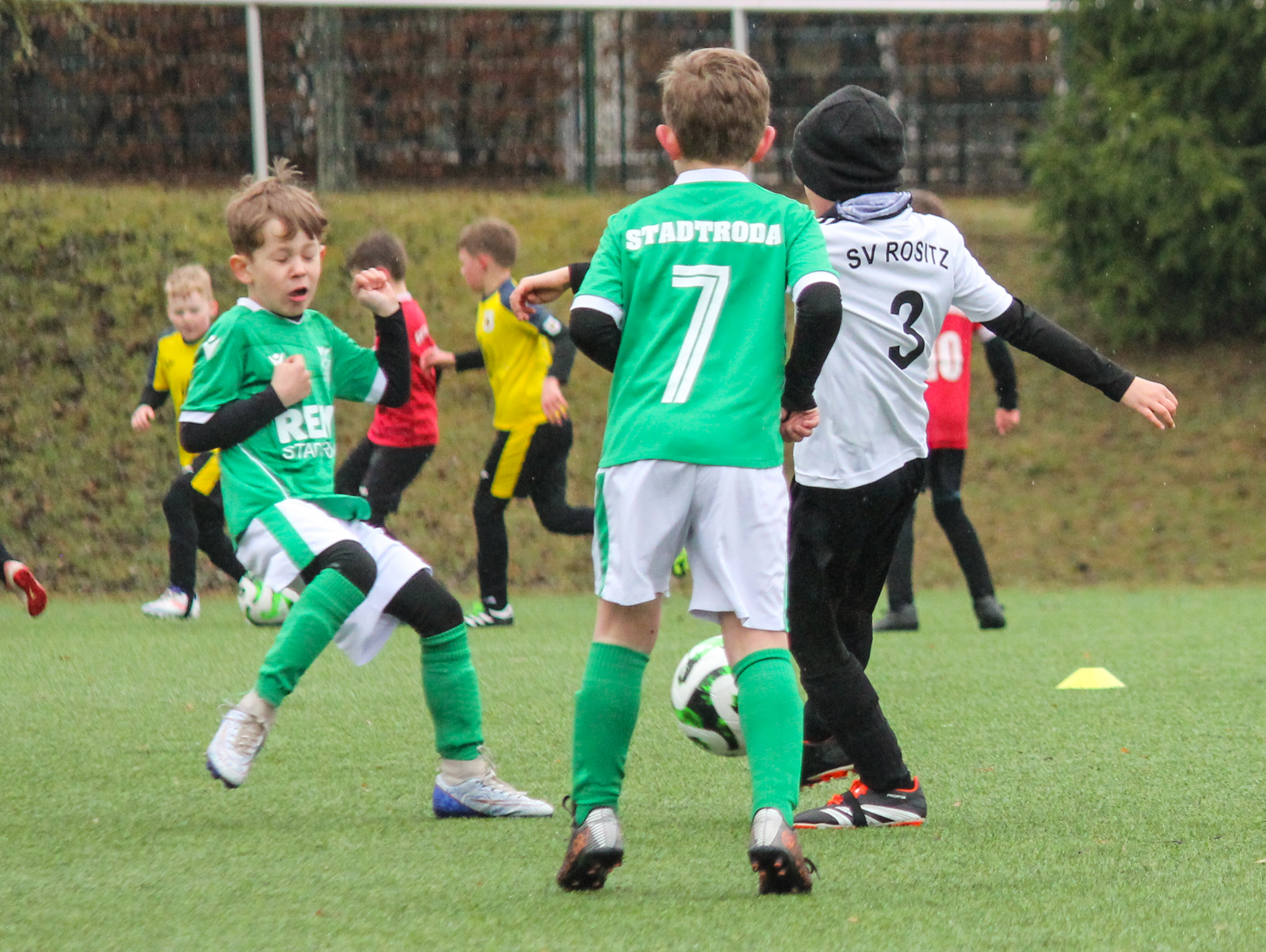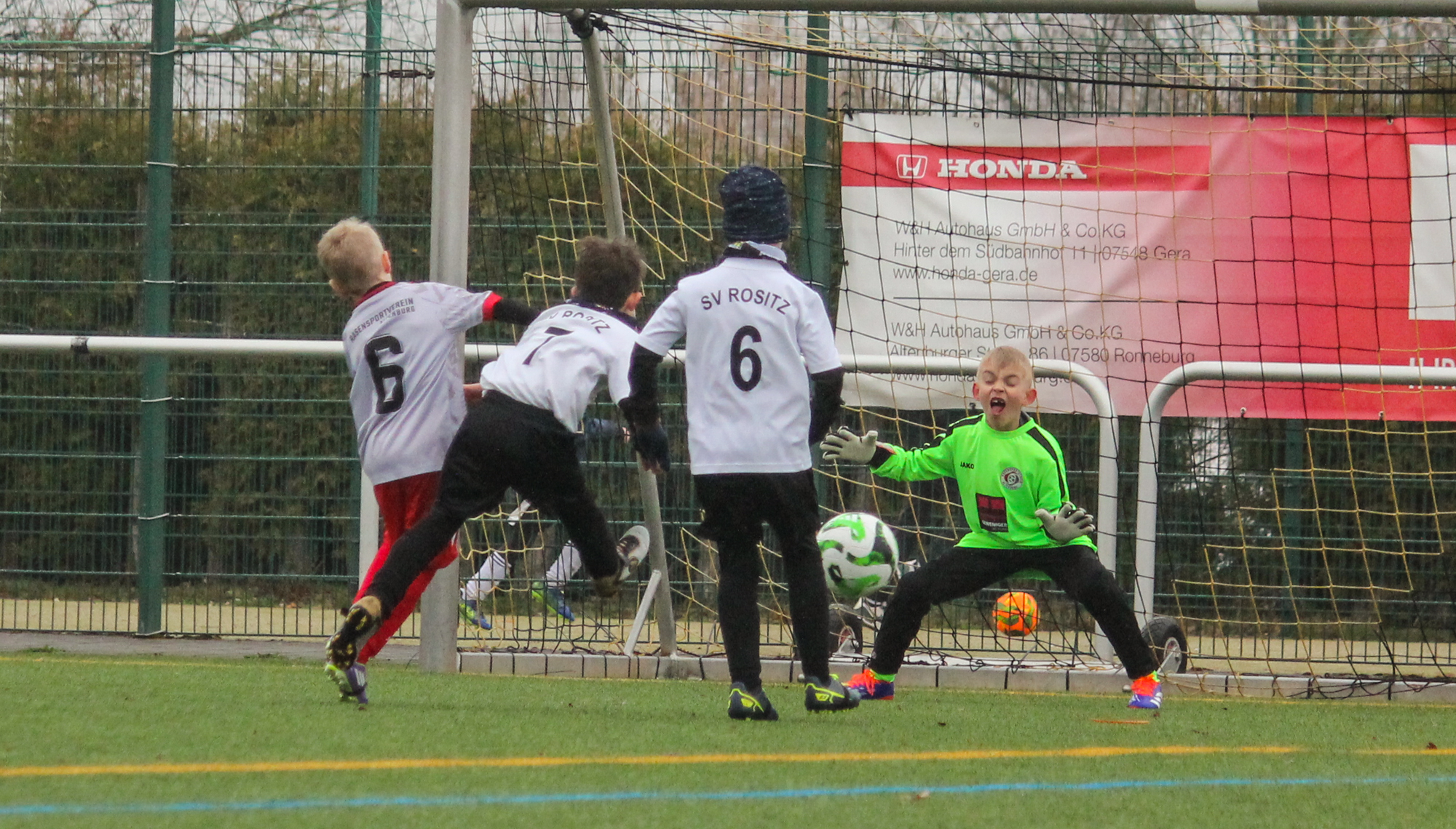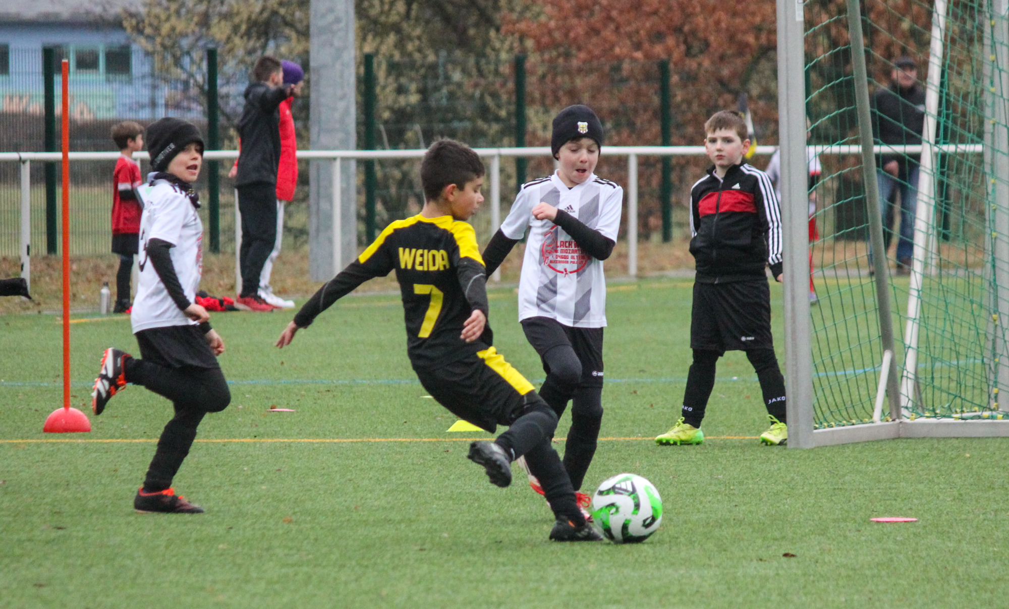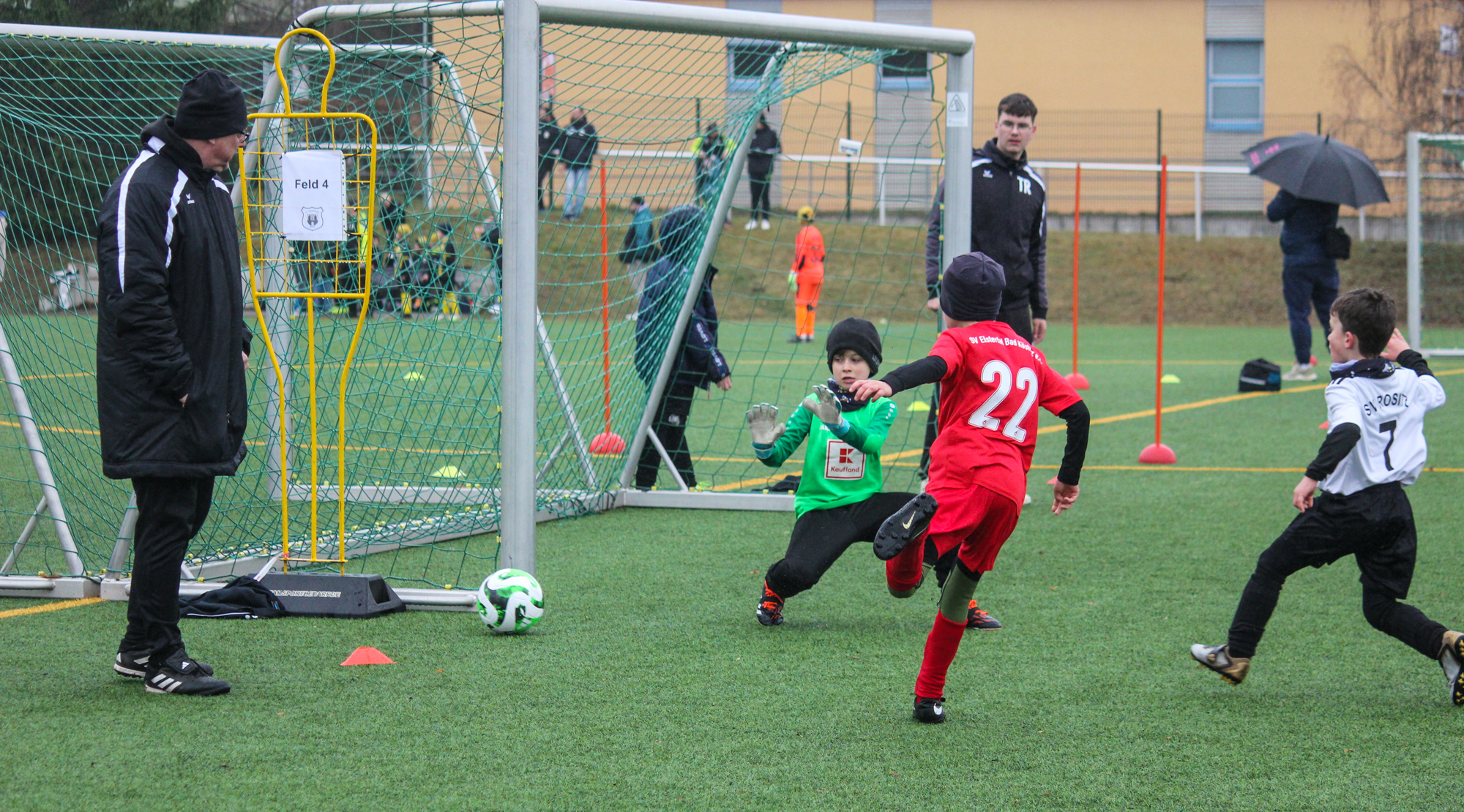 Den ersten Einsatz unter freiem Himmel stand am Sonntag für unsere F-Junioren auf dem Plan. Bei nasskalten Wetter und früher Zeit machten sich unsere Jungs auf den Weg zum Turnier des FC Thüringen Weida. 12 Mannschaften im Modus Jeder gegen Jeden sprachen für ein ordentlich Programm.