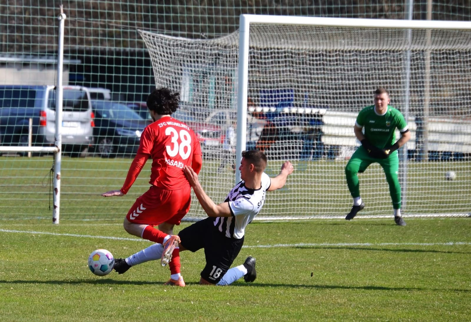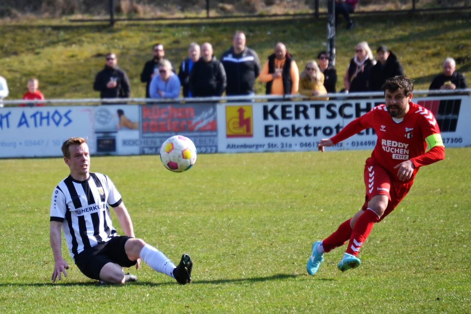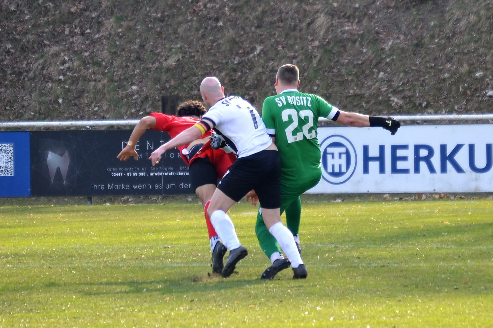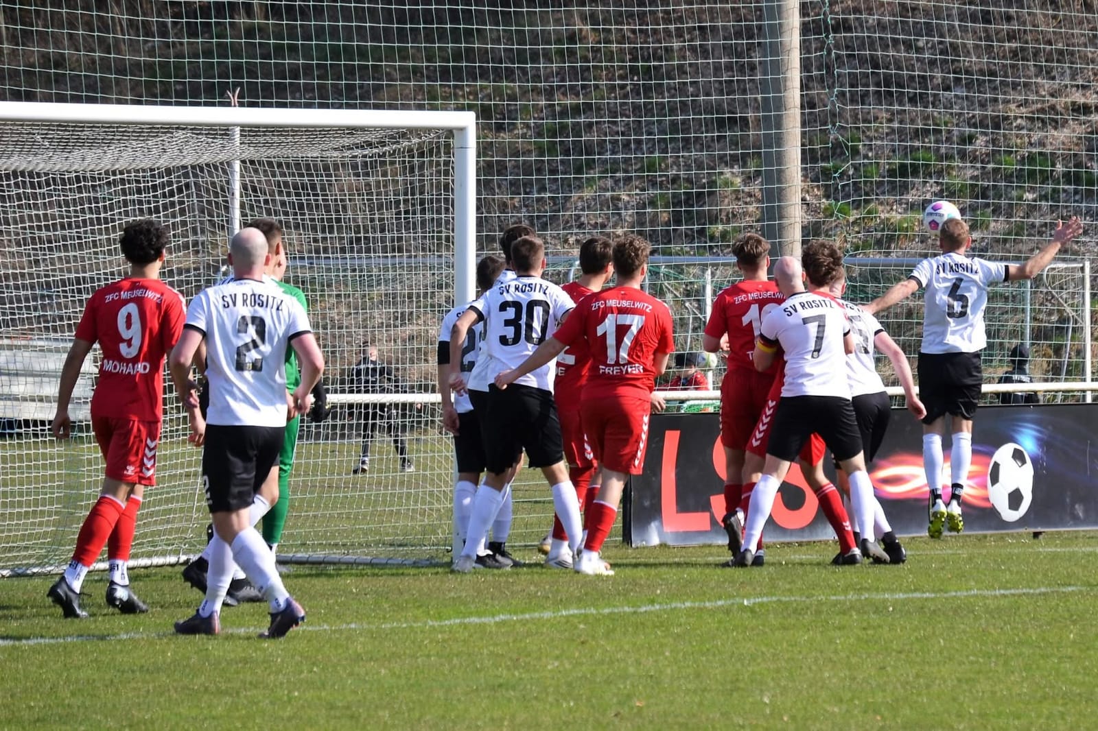 In der ersten Hälfte passierte demzufolge nicht viel. Einziger Aufreger in der Anfangsphase: der Rositzer Torwart Eric Fleißner wird unsauber angespielt und verliert den Ball gegen den Gästestürmer Burghold, den folgenden Querpass setzte Mohamed allerdings weit neben den Kasten der Hausherren. Gegen Ende des ersten Spielabschnitts wurde es noch einmal hektisch. Erst wird Mohamed im Rositzer Strafraum grenzwertig vom Ball getrennt, dann wurde der Rositzer Angreifer Max Kühne, als dieser alleine auf den Gästekeeper Kroner zulief, rot würdig von den Beinen geholt. Ergebnis: Kein Elfer auf der einen und gelbe statt rote Karte auf der anderen Seite. Kann man so entscheiden – ausgleichende Gerechtigkeit könnte man sagen. Torlos ging es in die Halbzeitpause. Nach dem Wechsel ein unverändertes Bild. Beide Torhüter mussten nicht einmal ernsthaft eingreifen. Das Leben machten sich die Gastgeber in der 67. Minute selber schwer. Ein eigentlich harmloser langer Zipsendorfer Ball sorgte für Verwirrung zwischen Rositzer Verteidiger und dem Torwart. Fehlende Kommunikation – Mohamed spritzt dazwischen – Keeper Fleißner foult. Rote Karte, ohne Frage berechtigt. Der anschließende Freistoß ging in die Mauer.