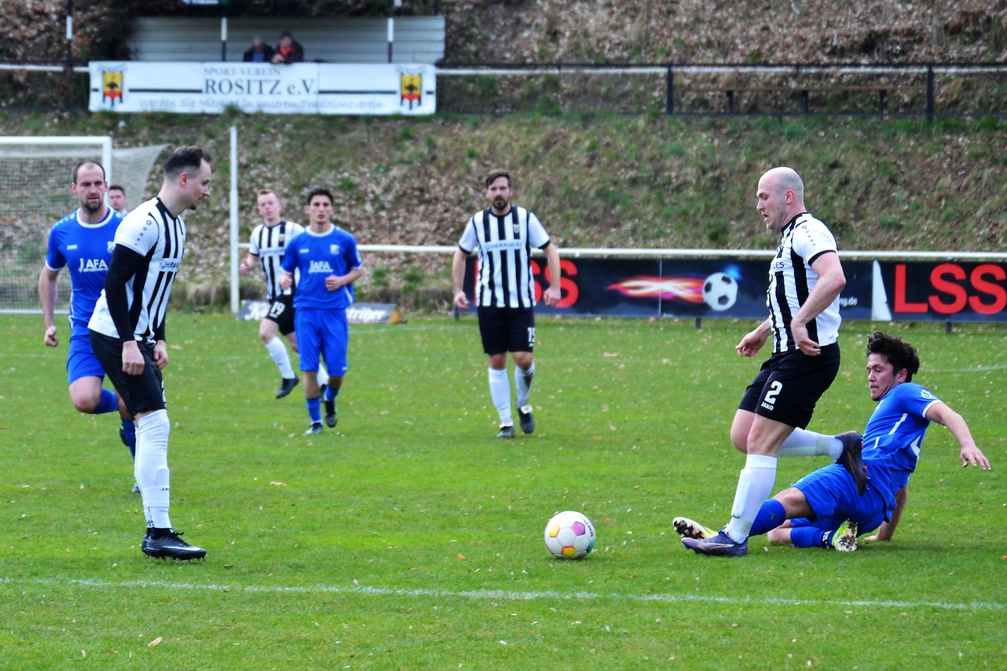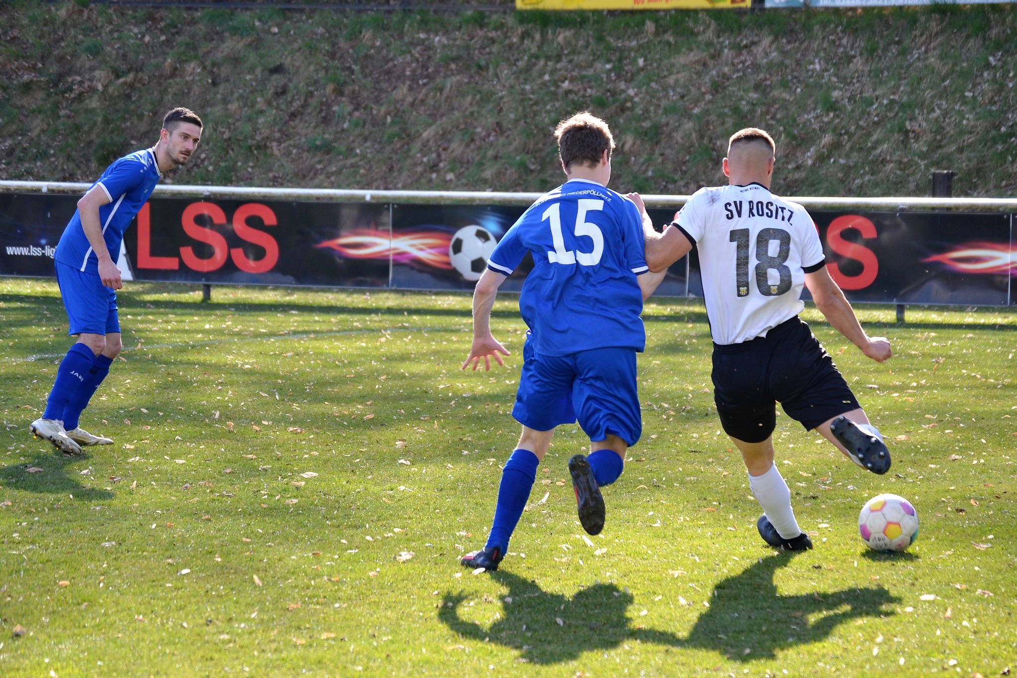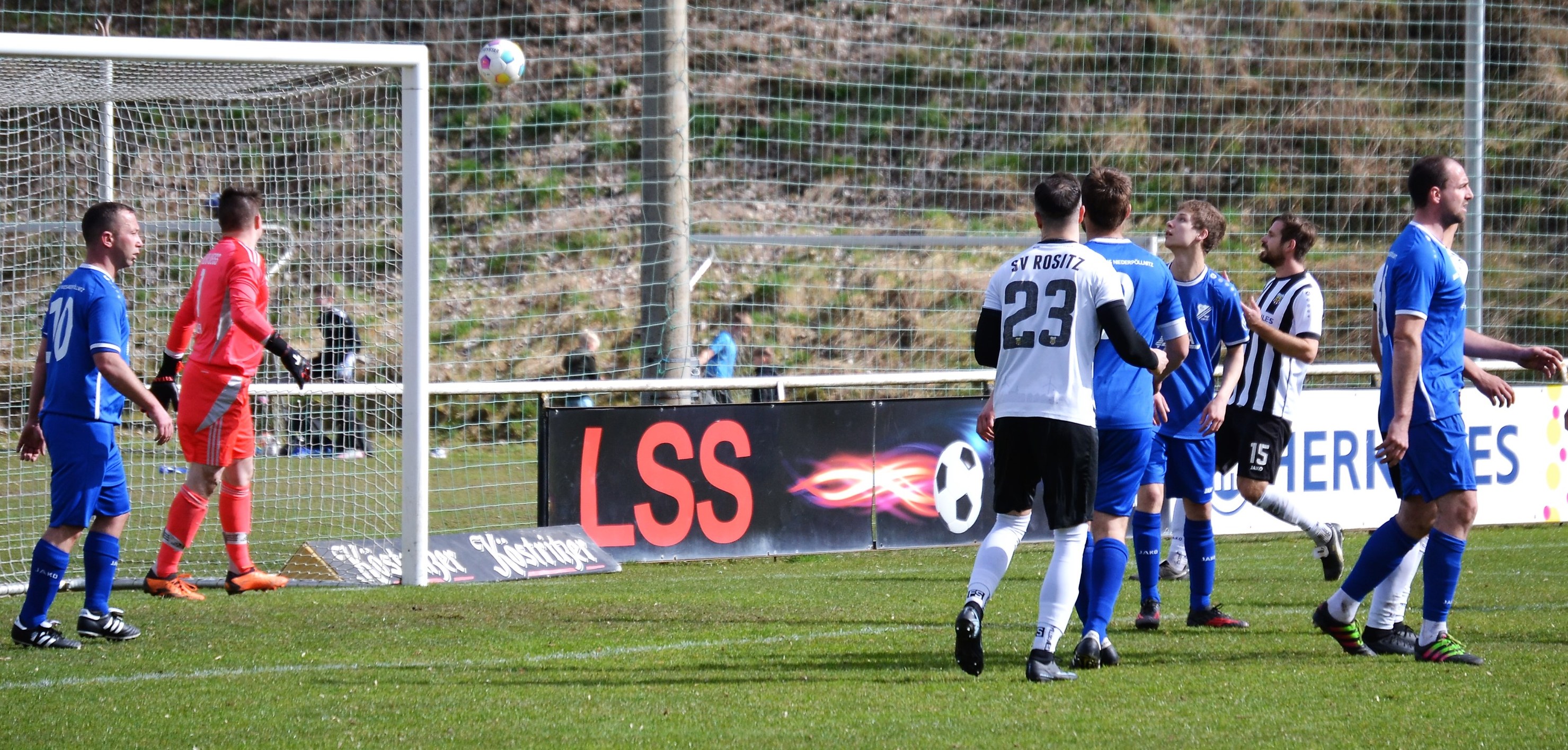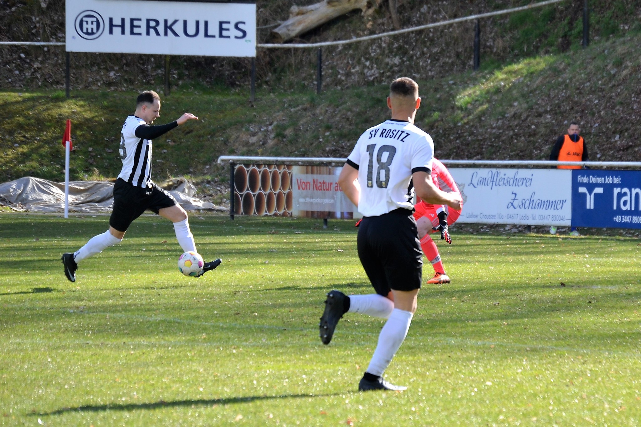 In der 20. Spielminute stand Marvin Stöbe bei einem dieser schnellen Rositzer Angriffe frei vor Philipp Müller und überwand diesen zur 1:0 Führung für die Hausherren. Die Gäste nicht richtig im Spiel – Rositz schlug erneut zu. Diesmal stocherte Max Kühne den Ball über die Linie.