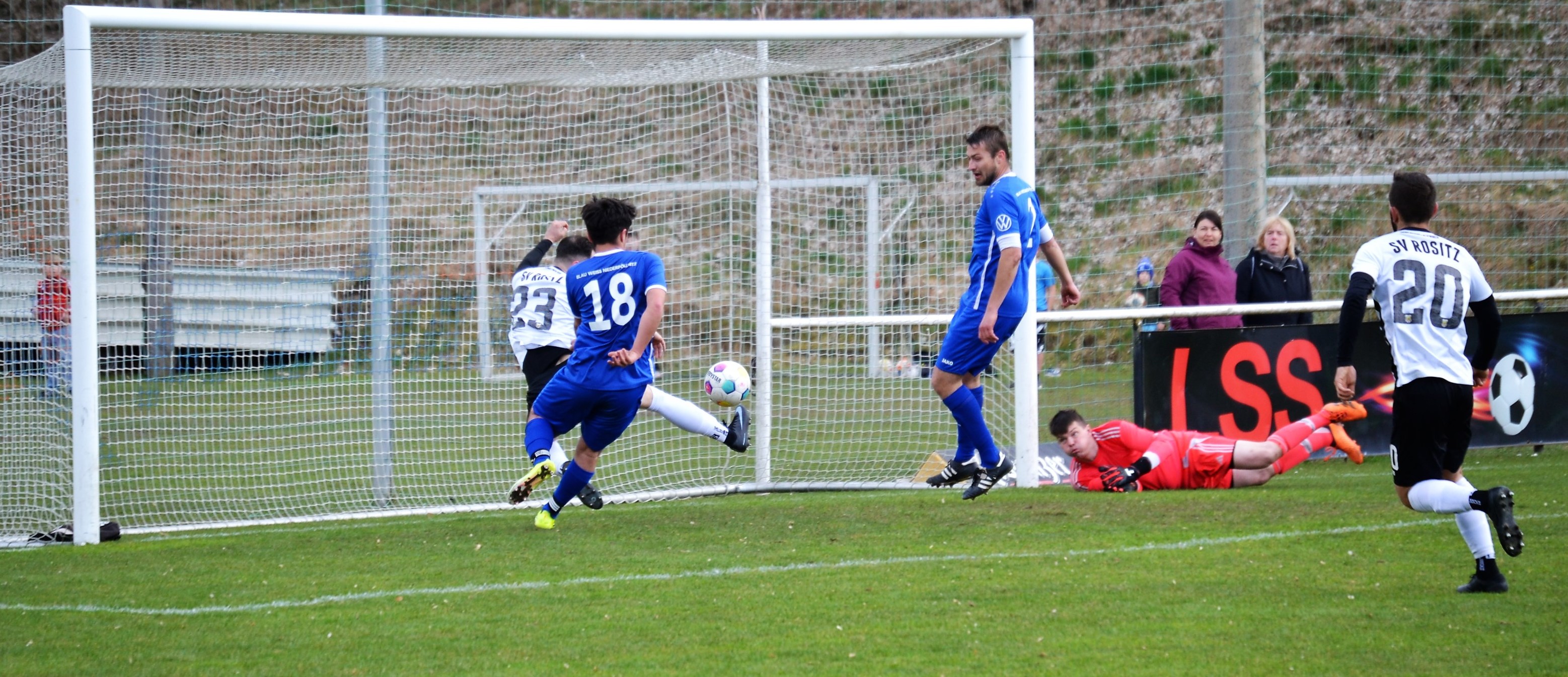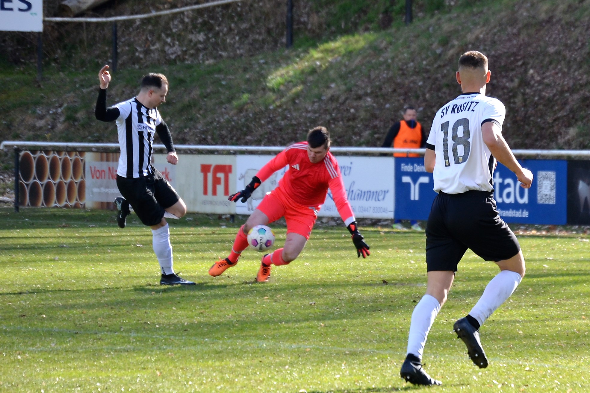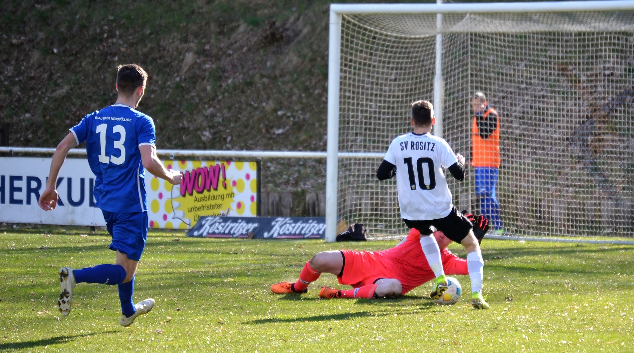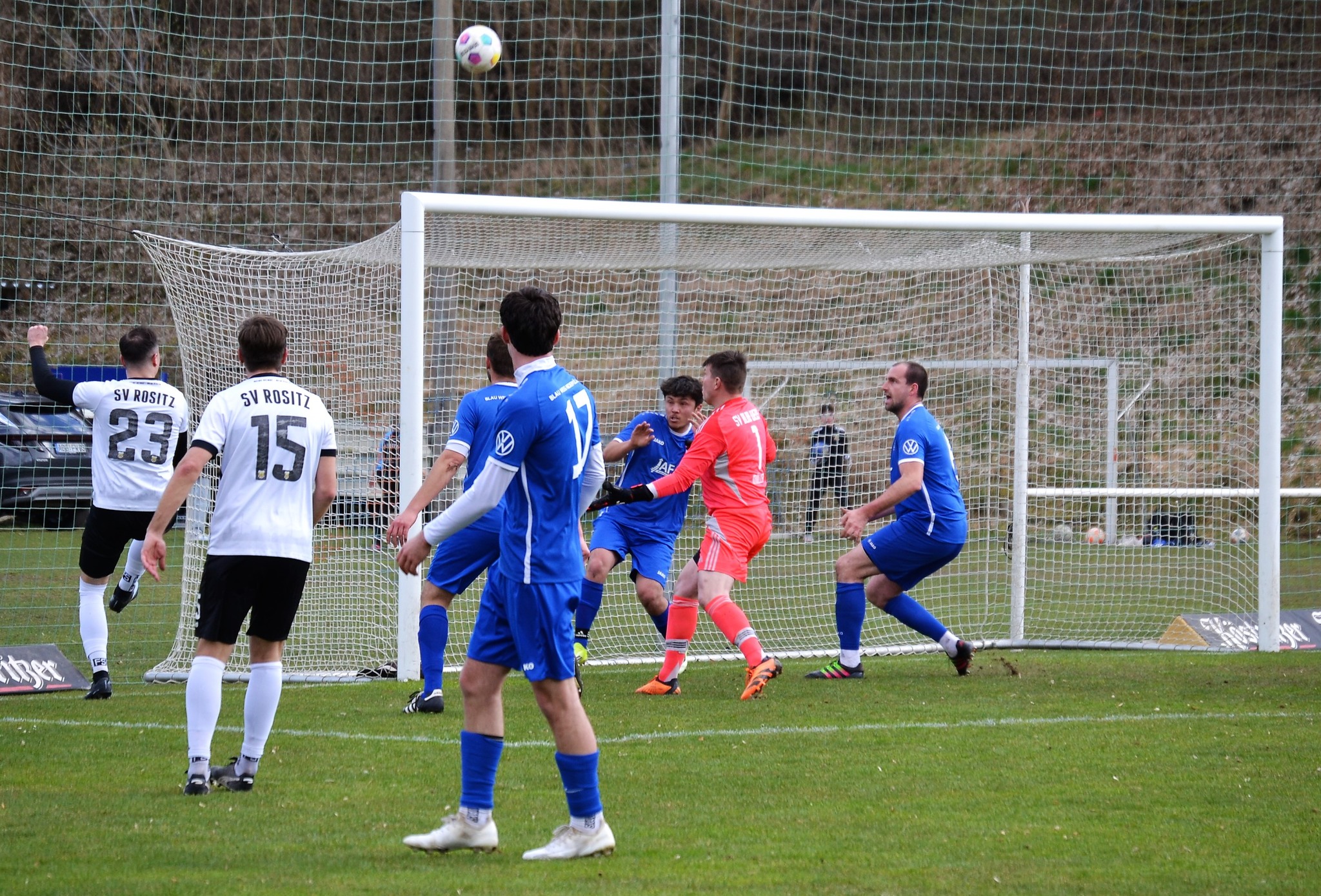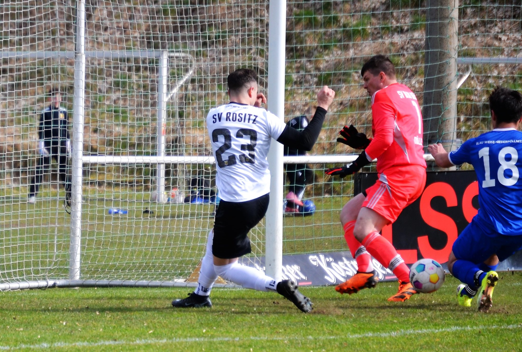 In der 20. Spielminute stand Marvin Stöbe bei einem dieser schnellen Rositzer Angriffe frei vor Philipp Müller und überwand diesen zur 1:0 Führung für die Hausherren. Die Gäste nicht richtig im Spiel – Rositz schlug erneut zu. Diesmal stocherte Max Kühne den Ball über die Linie.