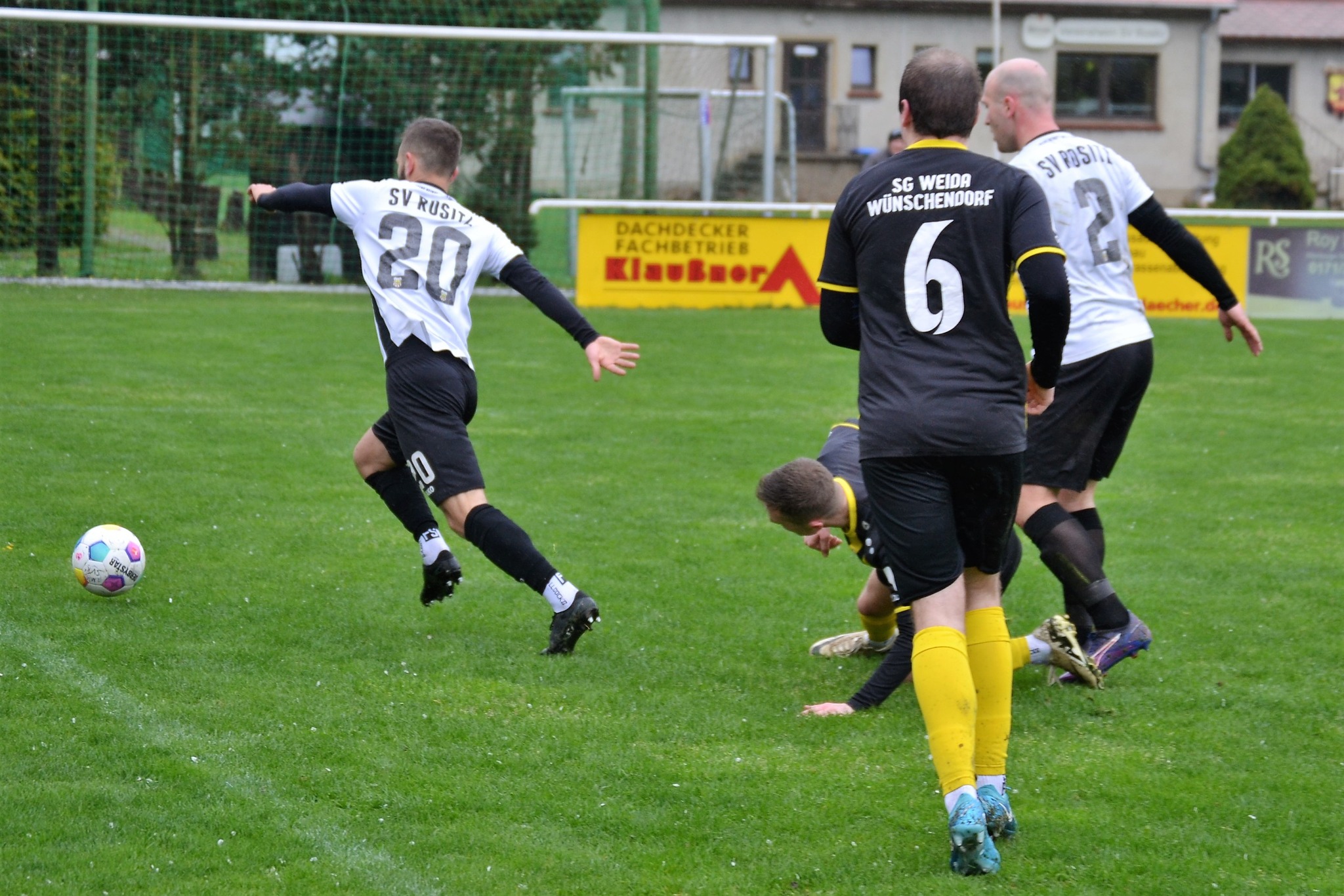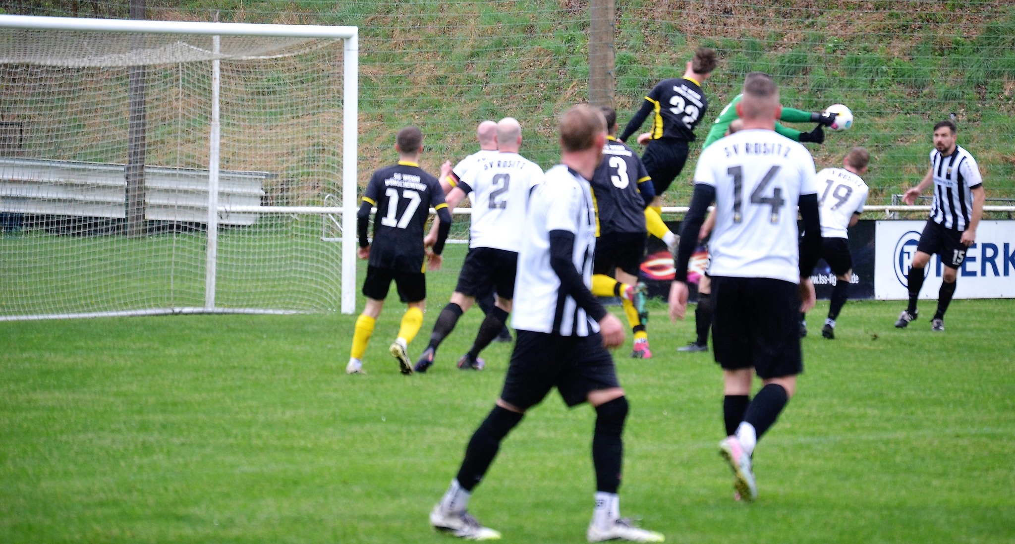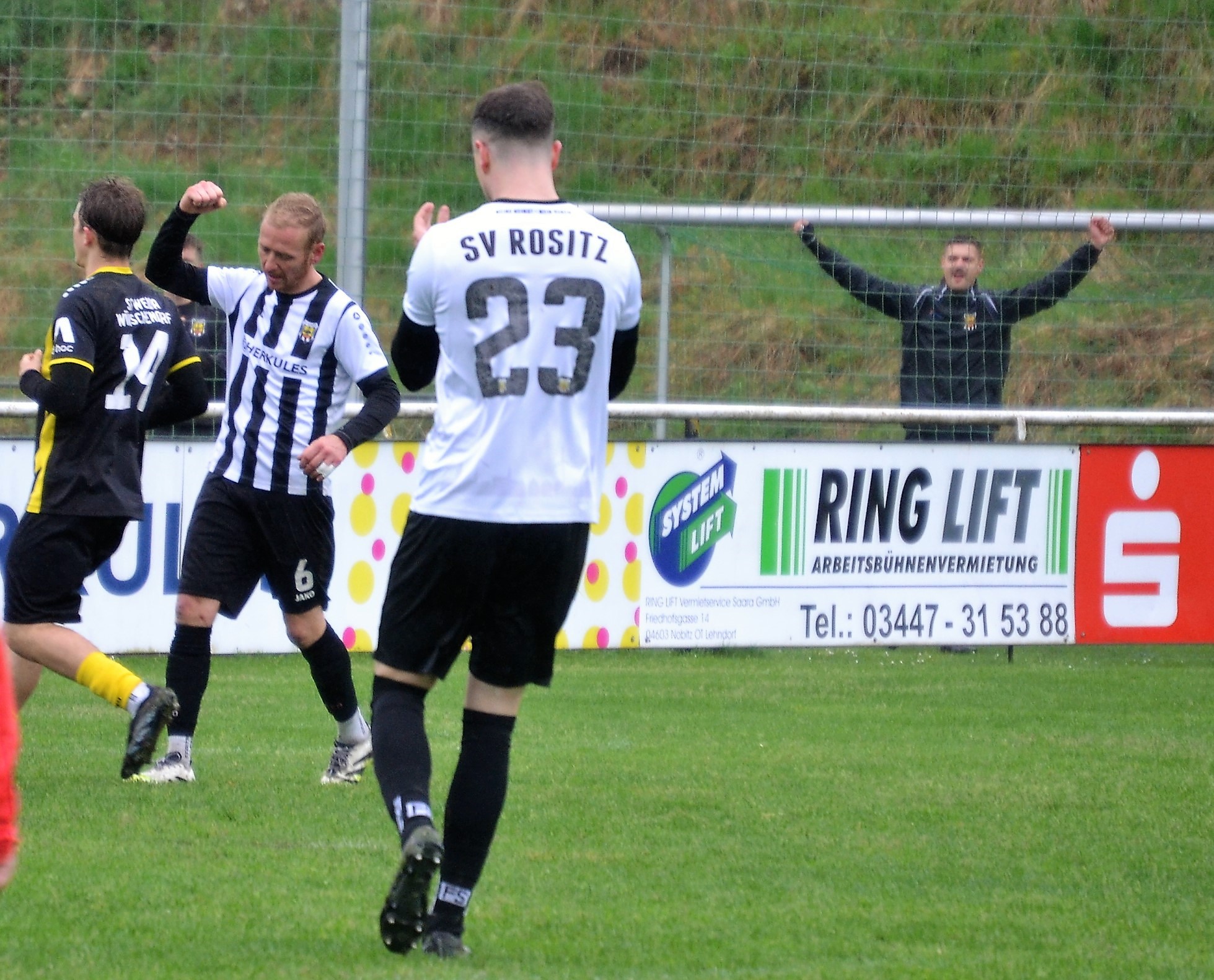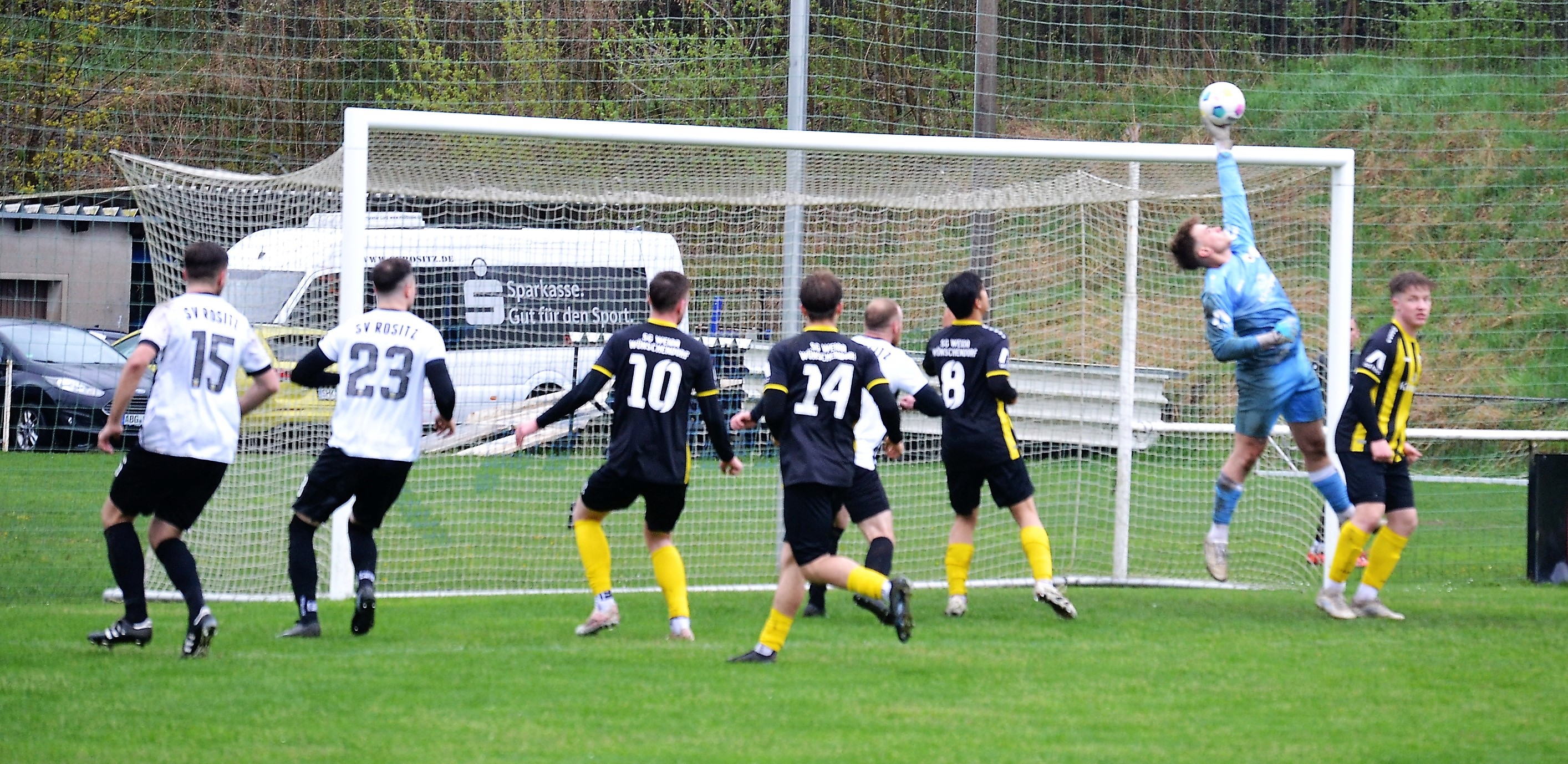 Tom Loske köpfte die Gastgeber bereits in der 12. Minute in Führung. Unsere Mannschaft weiter am Drücker, die Gäste nicht richtig im Spiel. Dann der Doppelschlag: Torjäger Maik Wegner erhöhte auf 2:0 (28.). Tim Möck, der nach langer Verletztenpause, wieder auf dem Weg zu alter Stärke ist, setzte in der 30. Spielminute einen Flachschuss ins linke Eck des Weidaer Gehäuses. Diese konnten kurz vor der Halbzeit durch Freiesleben auf 1:3 verkürzen. Direkt nach dem Wechsel sorgte erneut Tim Möck, per leicht abgefälschtem Schuss, für die endgültige Entscheidung (48.). Nun ging es fast nur in eine Richtung. Der SVR drückte und spielte sich zahlreiche Torchancen heraus. Auf dem tiefen und schwierigen Geläuf war es allerdings für beide Mannschaften recht schwer, technisch sauber zu kombinieren. Die Rositzer Abwehr stand sicher und ließ Torjäger Berthold kaum zur Entfaltung kommen. Den schönsten Angriff des Tages vollendete Maik Wegner volley ins Gästetor (70.). Trotz des anhaltenden Regens versuchte der SV Rositz weitere Treffer zu erzielen, doch entweder der Pfosten stand im Weg oder der gute Torwart der Gäste hatte etwas dagegen. So blieb es am Ende bei einem guten 5:1 Heimerfolg gegen den Tabellen-5. aus Weida/Wünschendorf.