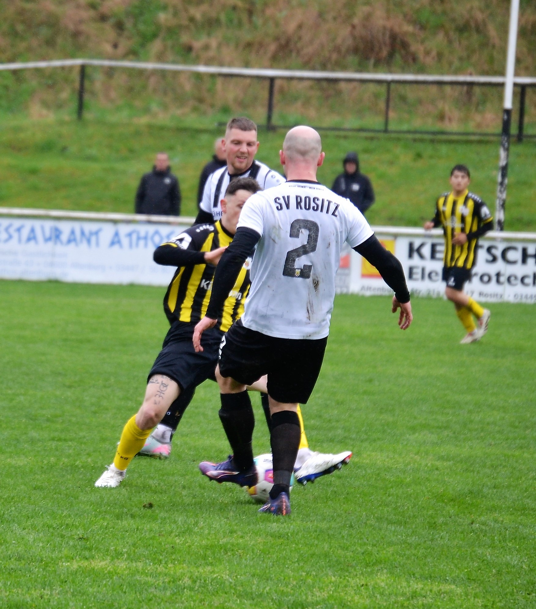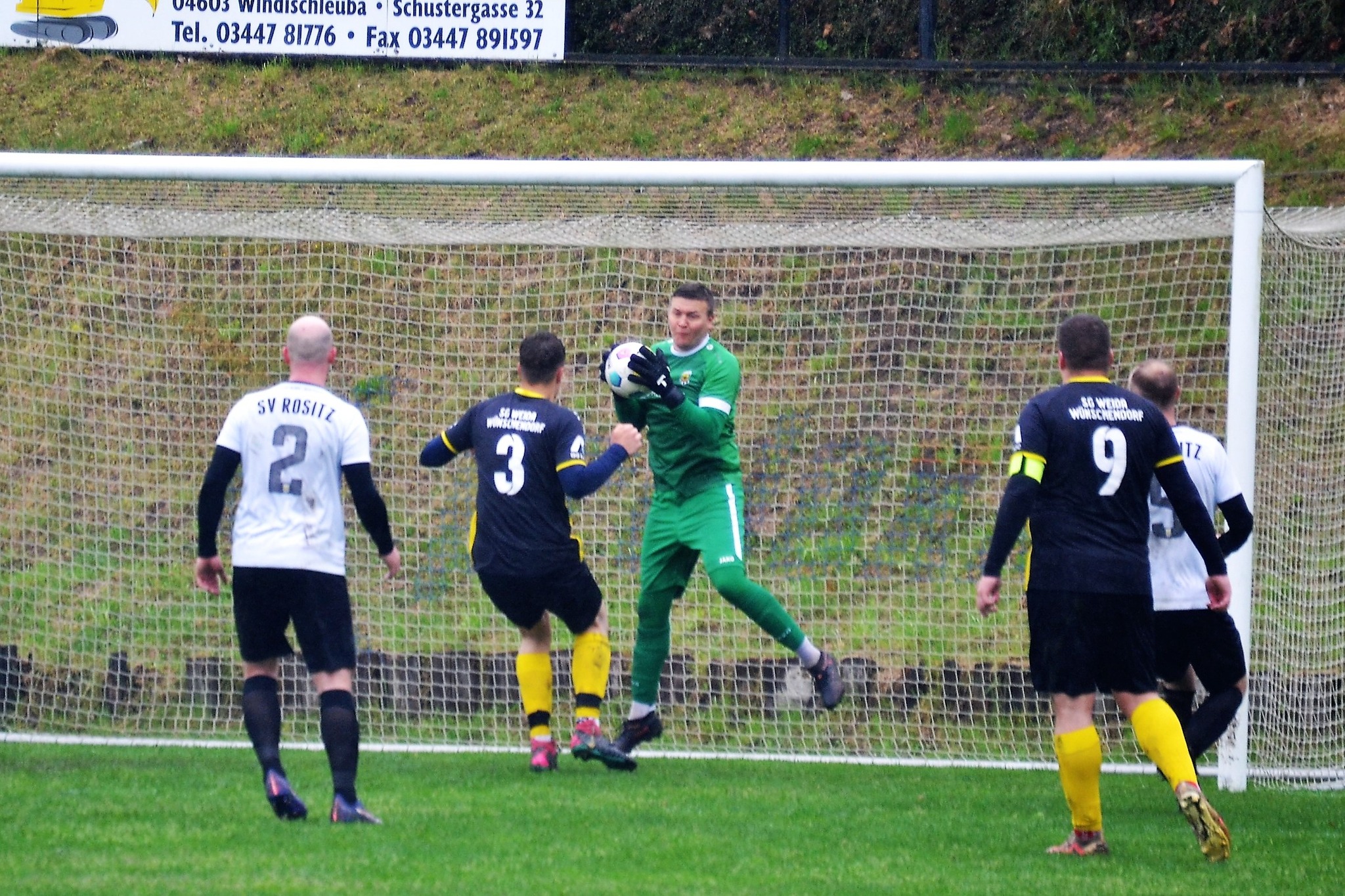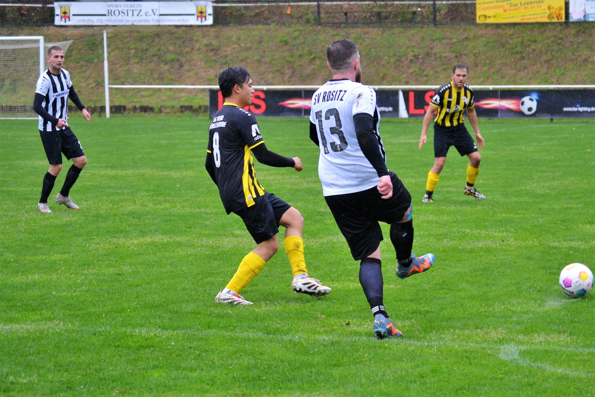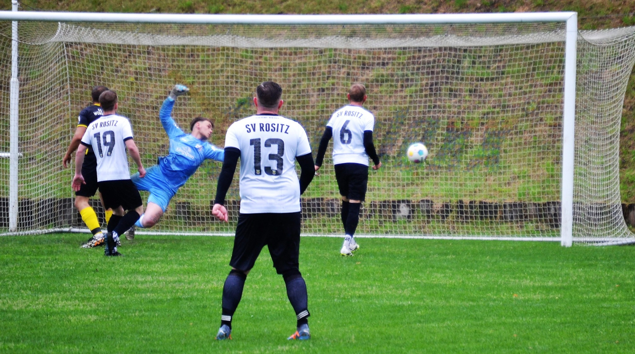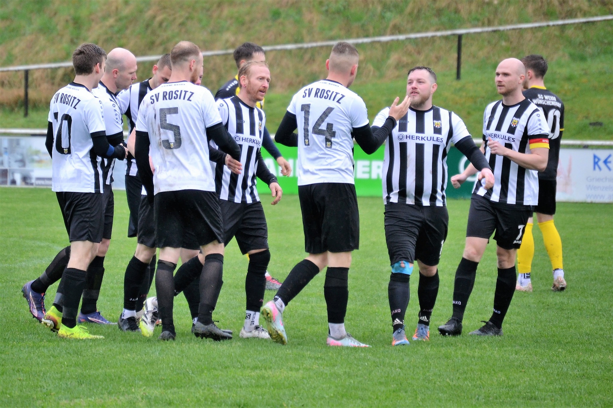 Tom Loske köpfte die Gastgeber bereits in der 12. Minute in Führung. Unsere Mannschaft weiter am Drücker, die Gäste nicht richtig im Spiel. Dann der Doppelschlag: Torjäger Maik Wegner erhöhte auf 2:0 (28.). Tim Möck, der nach langer Verletztenpause, wieder auf dem Weg zu alter Stärke ist, setzte in der 30. Spielminute einen Flachschuss ins linke Eck des Weidaer Gehäuses. Diese konnten kurz vor der Halbzeit durch Freiesleben auf 1:3 verkürzen. Direkt nach dem Wechsel sorgte erneut Tim Möck, per leicht abgefälschtem Schuss, für die endgültige Entscheidung (48.). Nun ging es fast nur in eine Richtung. Der SVR drückte und spielte sich zahlreiche Torchancen heraus. Auf dem tiefen und schwierigen Geläuf war es allerdings für beide Mannschaften recht schwer, technisch sauber zu kombinieren. Die Rositzer Abwehr stand sicher und ließ Torjäger Berthold kaum zur Entfaltung kommen. Den schönsten Angriff des Tages vollendete Maik Wegner volley ins Gästetor (70.). Trotz des anhaltenden Regens versuchte der SV Rositz weitere Treffer zu erzielen, doch entweder der Pfosten stand im Weg oder der gute Torwart der Gäste hatte etwas dagegen. So blieb es am Ende bei einem guten 5:1 Heimerfolg gegen den Tabellen-5. aus Weida/Wünschendorf.
