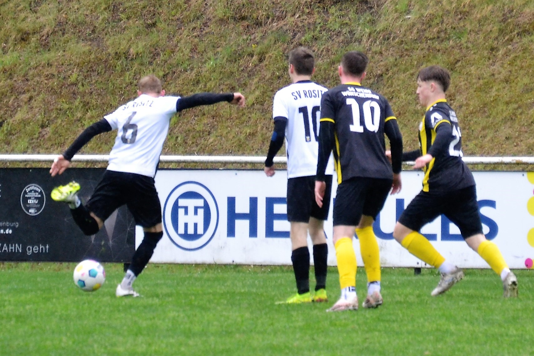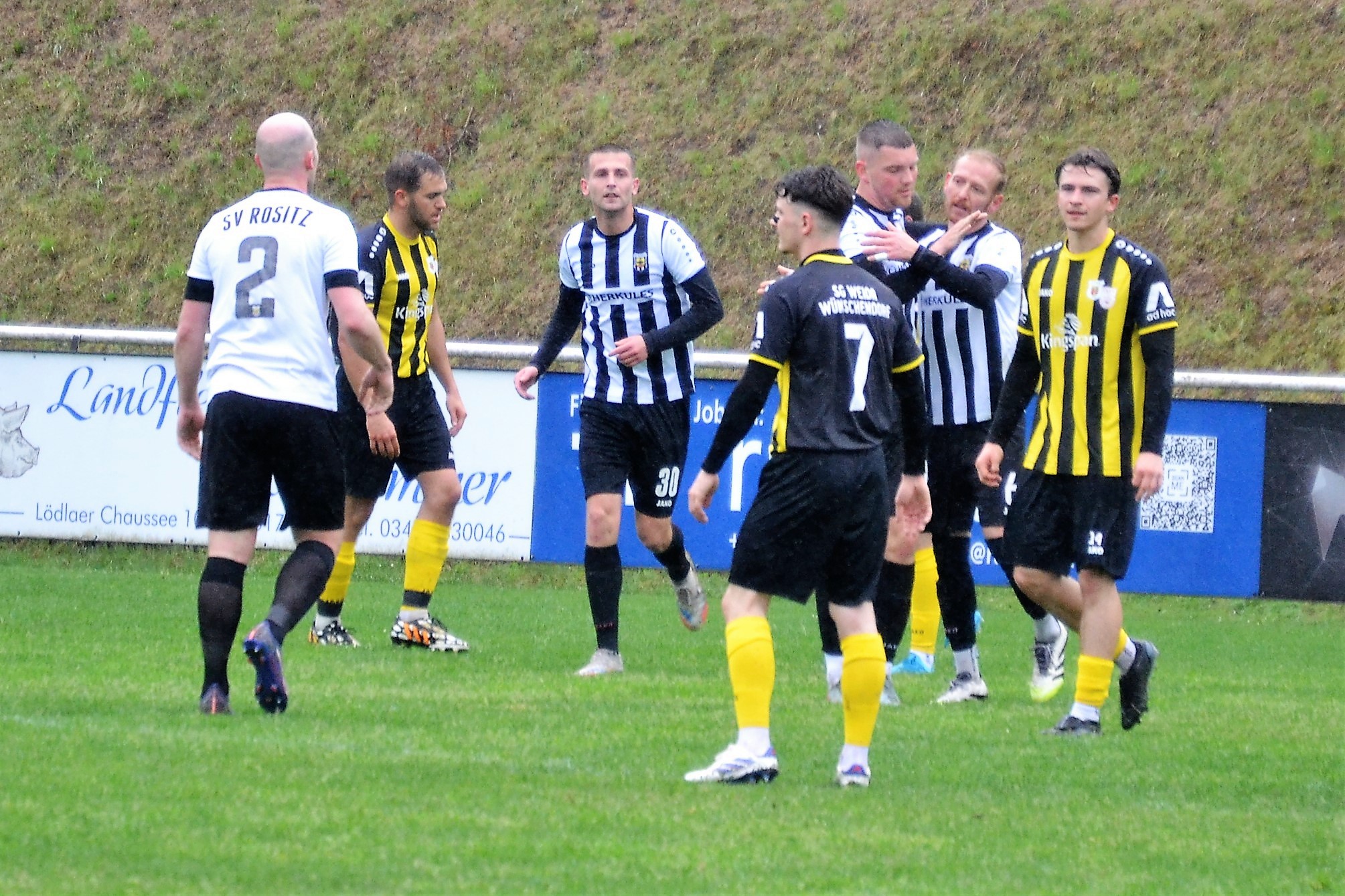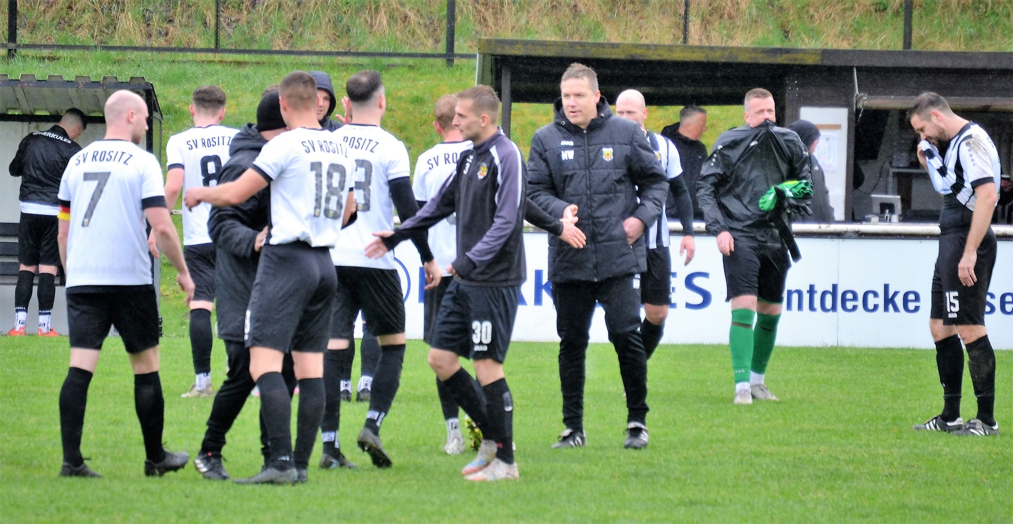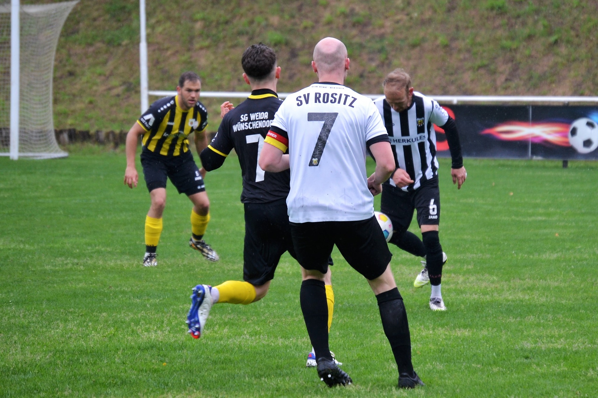 Tom Loske köpfte die Gastgeber bereits in der 12. Minute in Führung. Unsere Mannschaft weiter am Drücker, die Gäste nicht richtig im Spiel. Dann der Doppelschlag: Torjäger Maik Wegner erhöhte auf 2:0 (28.). Tim Möck, der nach langer Verletztenpause, wieder auf dem Weg zu alter Stärke ist, setzte in der 30. Spielminute einen Flachschuss ins linke Eck des Weidaer Gehäuses. Diese konnten kurz vor der Halbzeit durch Freiesleben auf 1:3 verkürzen. Direkt nach dem Wechsel sorgte erneut Tim Möck, per leicht abgefälschtem Schuss, für die endgültige Entscheidung (48.). Nun ging es fast nur in eine Richtung. Der SVR drückte und spielte sich zahlreiche Torchancen heraus. Auf dem tiefen und schwierigen Geläuf war es allerdings für beide Mannschaften recht schwer, technisch sauber zu kombinieren. Die Rositzer Abwehr stand sicher und ließ Torjäger Berthold kaum zur Entfaltung kommen. Den schönsten Angriff des Tages vollendete Maik Wegner volley ins Gästetor (70.). Trotz des anhaltenden Regens versuchte der SV Rositz weitere Treffer zu erzielen, doch entweder der Pfosten stand im Weg oder der gute Torwart der Gäste hatte etwas dagegen. So blieb es am Ende bei einem guten 5:1 Heimerfolg gegen den Tabellen-5. aus Weida/Wünschendorf.
