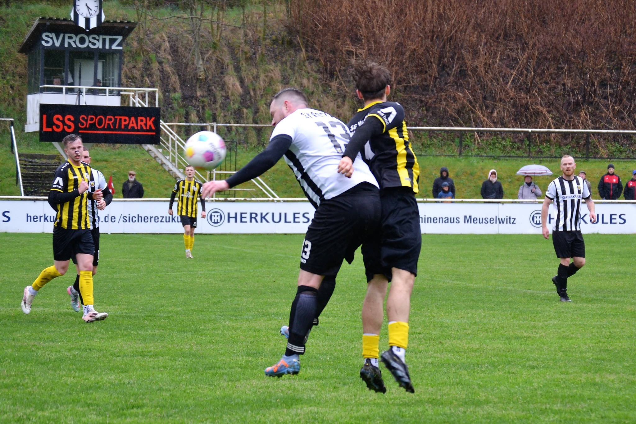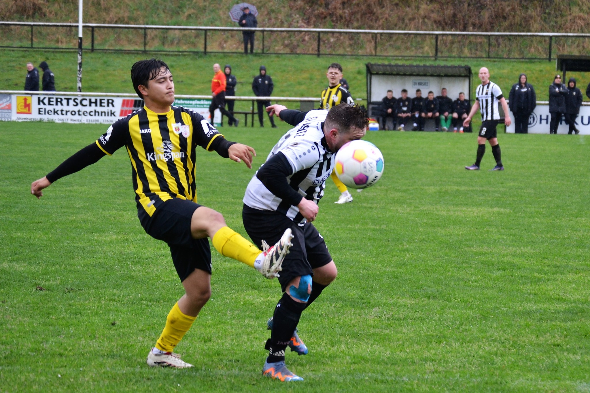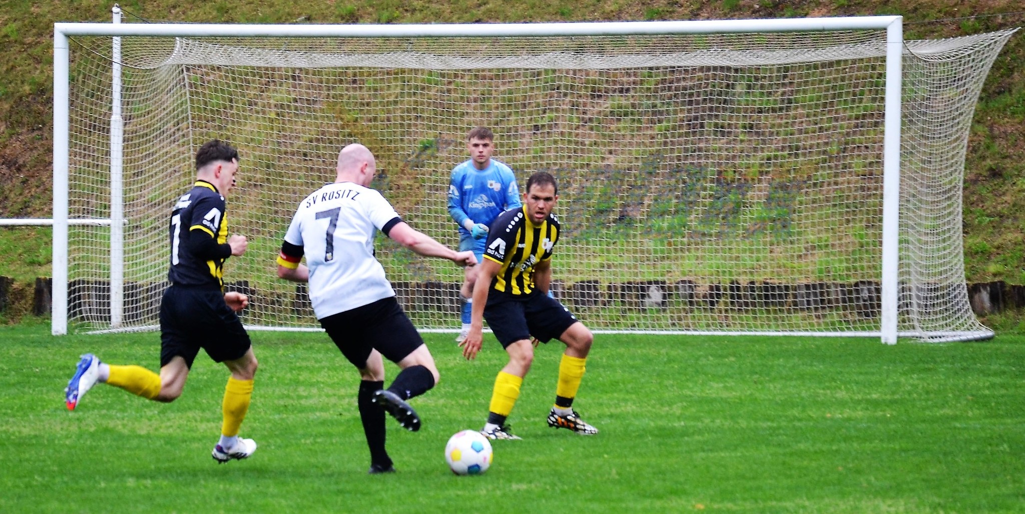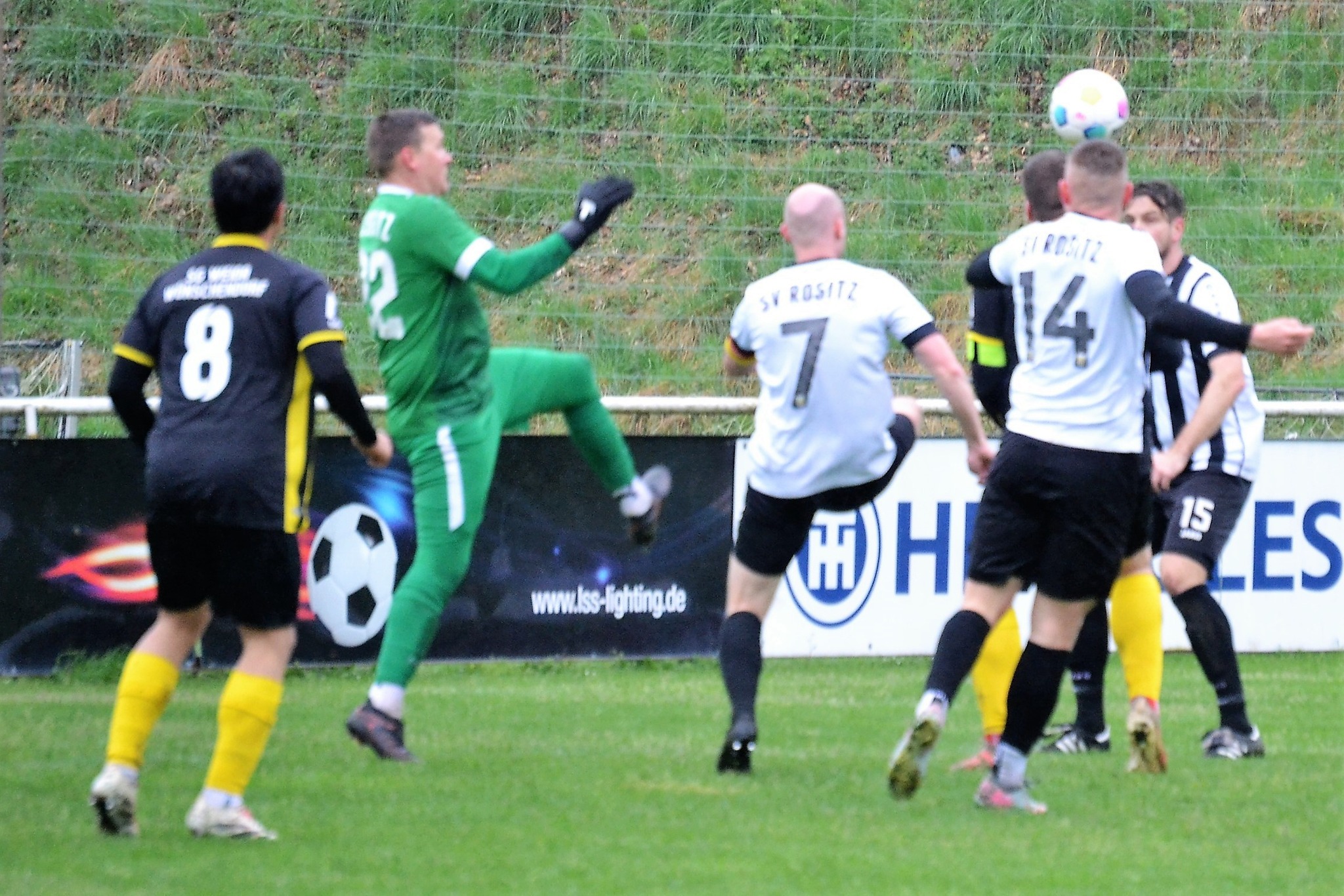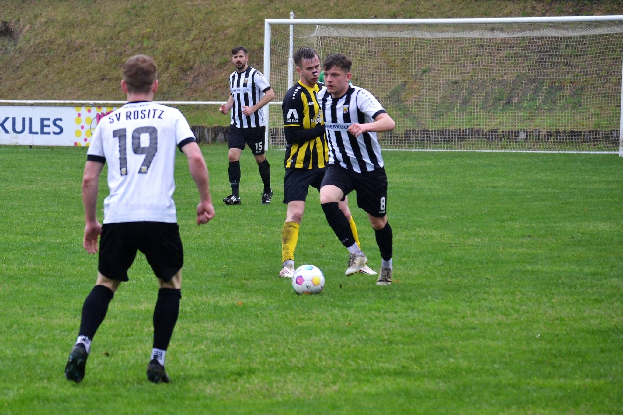 Tom Loske köpfte die Gastgeber bereits in der 12. Minute in Führung. Unsere Mannschaft weiter am Drücker, die Gäste nicht richtig im Spiel. Dann der Doppelschlag: Torjäger Maik Wegner erhöhte auf 2:0 (28.). Tim Möck, der nach langer Verletztenpause, wieder auf dem Weg zu alter Stärke ist, setzte in der 30. Spielminute einen Flachschuss ins linke Eck des Weidaer Gehäuses. Diese konnten kurz vor der Halbzeit durch Freiesleben auf 1:3 verkürzen. Direkt nach dem Wechsel sorgte erneut Tim Möck, per leicht abgefälschtem Schuss, für die endgültige Entscheidung (48.). Nun ging es fast nur in eine Richtung. Der SVR drückte und spielte sich zahlreiche Torchancen heraus. Auf dem tiefen und schwierigen Geläuf war es allerdings für beide Mannschaften recht schwer, technisch sauber zu kombinieren. Die Rositzer Abwehr stand sicher und ließ Torjäger Berthold kaum zur Entfaltung kommen. Den schönsten Angriff des Tages vollendete Maik Wegner volley ins Gästetor (70.). Trotz des anhaltenden Regens versuchte der SV Rositz weitere Treffer zu erzielen, doch entweder der Pfosten stand im Weg oder der gute Torwart der Gäste hatte etwas dagegen. So blieb es am Ende bei einem guten 5:1 Heimerfolg gegen den Tabellen-5. aus Weida/Wünschendorf.
