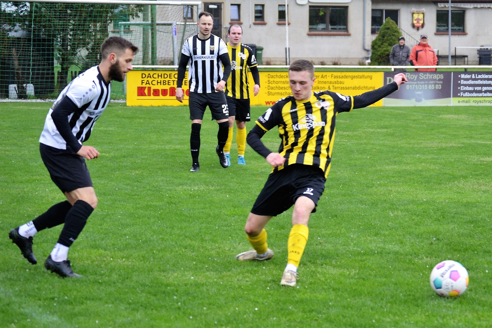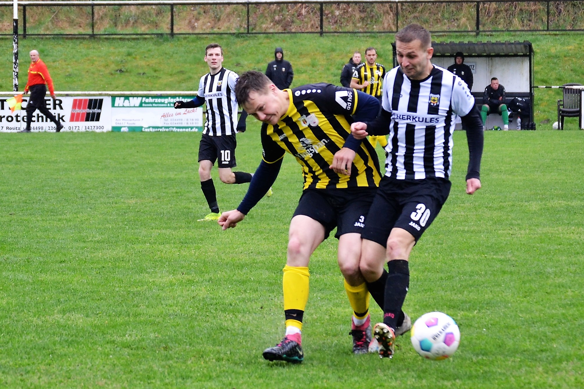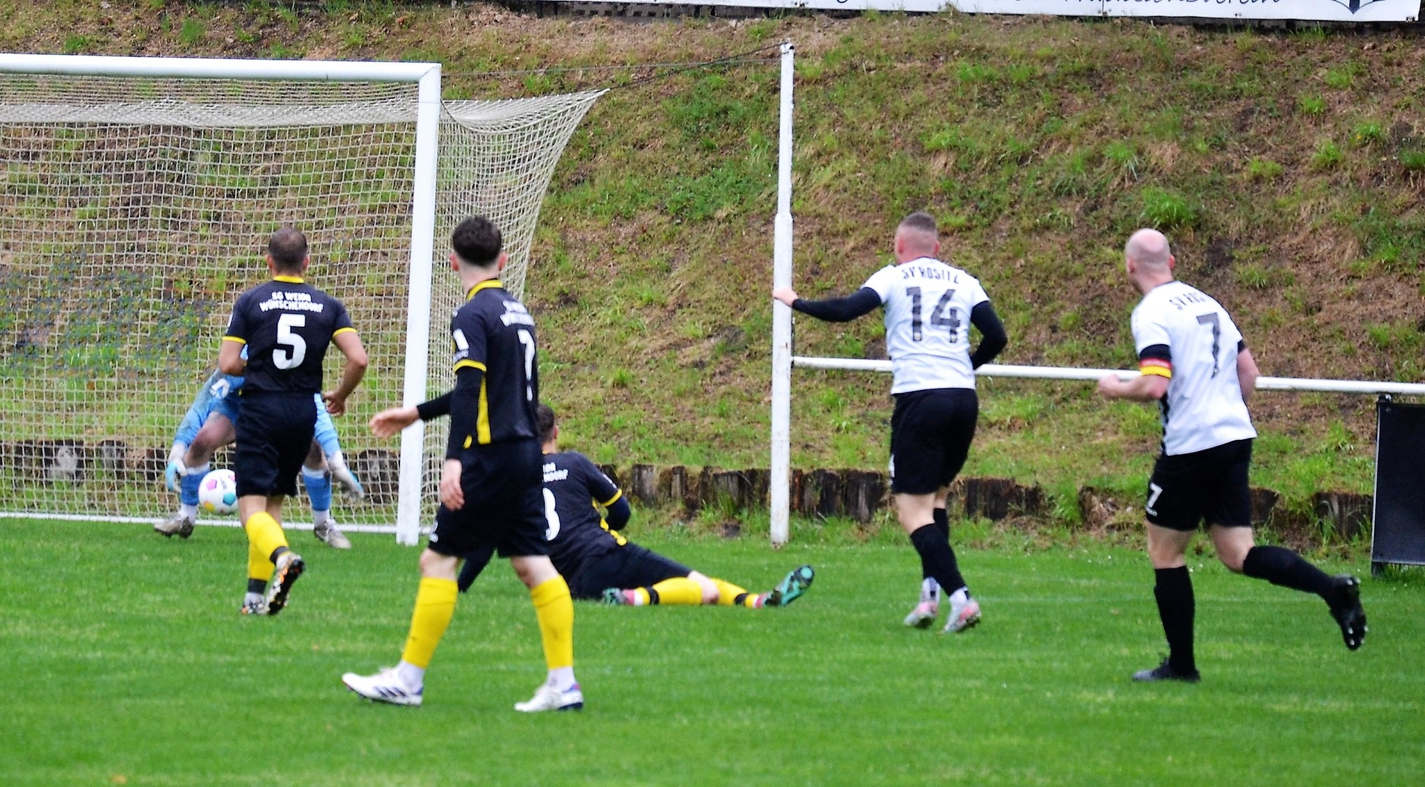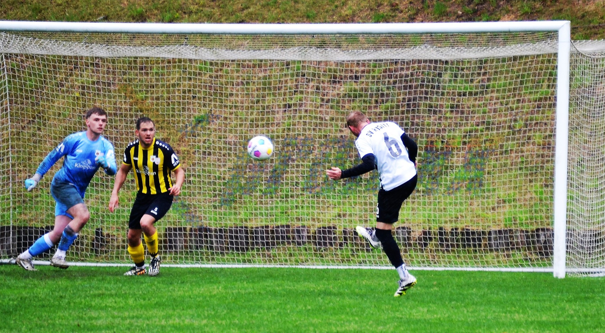 Tom Loske köpfte die Gastgeber bereits in der 12. Minute in Führung. Unsere Mannschaft weiter am Drücker, die Gäste nicht richtig im Spiel. Dann der Doppelschlag: Torjäger Maik Wegner erhöhte auf 2:0 (28.). Tim Möck, der nach langer Verletztenpause, wieder auf dem Weg zu alter Stärke ist, setzte in der 30. Spielminute einen Flachschuss ins linke Eck des Weidaer Gehäuses. Diese konnten kurz vor der Halbzeit durch Freiesleben auf 1:3 verkürzen. Direkt nach dem Wechsel sorgte erneut Tim Möck, per leicht abgefälschtem Schuss, für die endgültige Entscheidung (48.). Nun ging es fast nur in eine Richtung. Der SVR drückte und spielte sich zahlreiche Torchancen heraus. Auf dem tiefen und schwierigen Geläuf war es allerdings für beide Mannschaften recht schwer, technisch sauber zu kombinieren. Die Rositzer Abwehr stand sicher und ließ Torjäger Berthold kaum zur Entfaltung kommen. Den schönsten Angriff des Tages vollendete Maik Wegner volley ins Gästetor (70.). Trotz des anhaltenden Regens versuchte der SV Rositz weitere Treffer zu erzielen, doch entweder der Pfosten stand im Weg oder der gute Torwart der Gäste hatte etwas dagegen. So blieb es am Ende bei einem guten 5:1 Heimerfolg gegen den Tabellen-5. aus Weida/Wünschendorf.