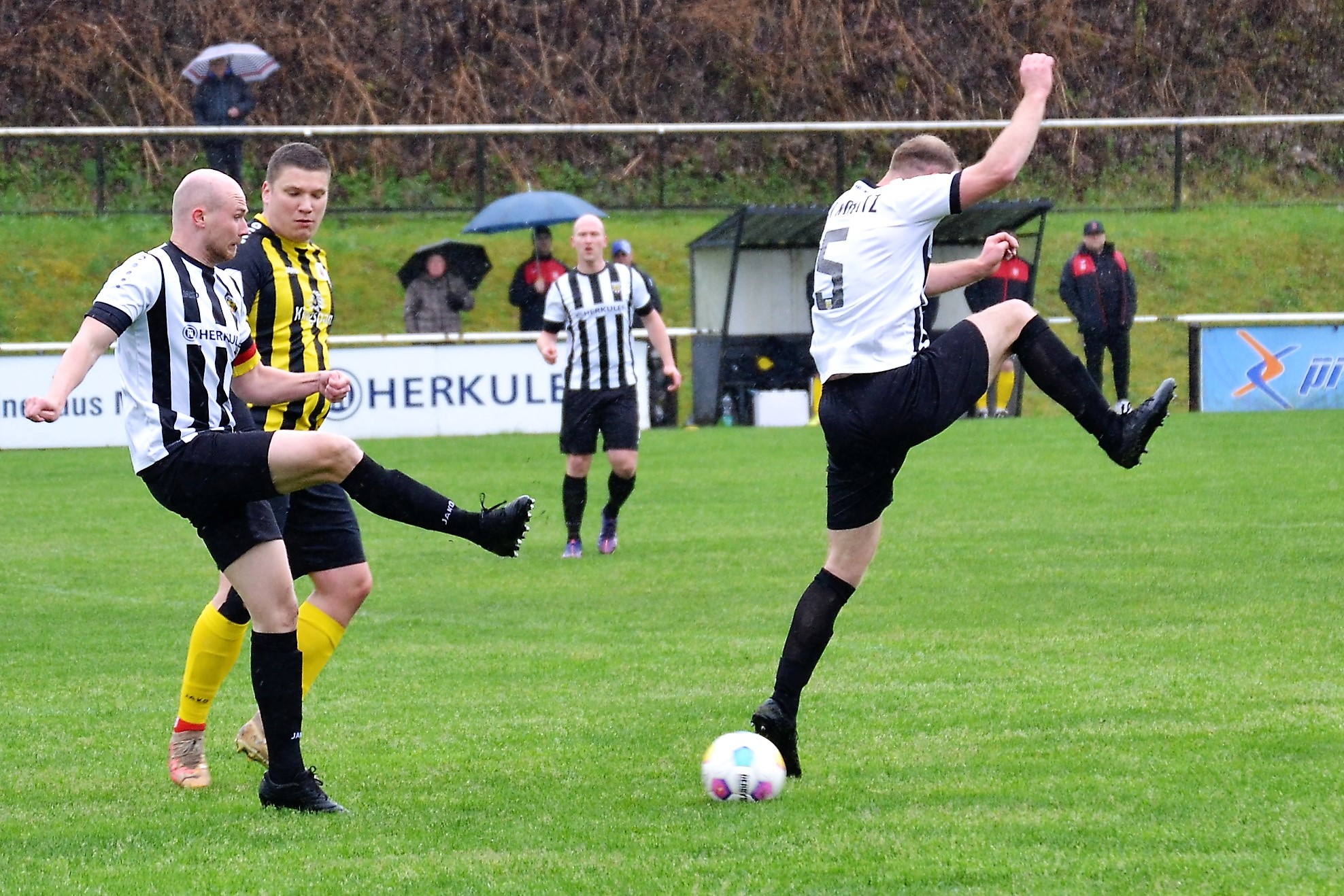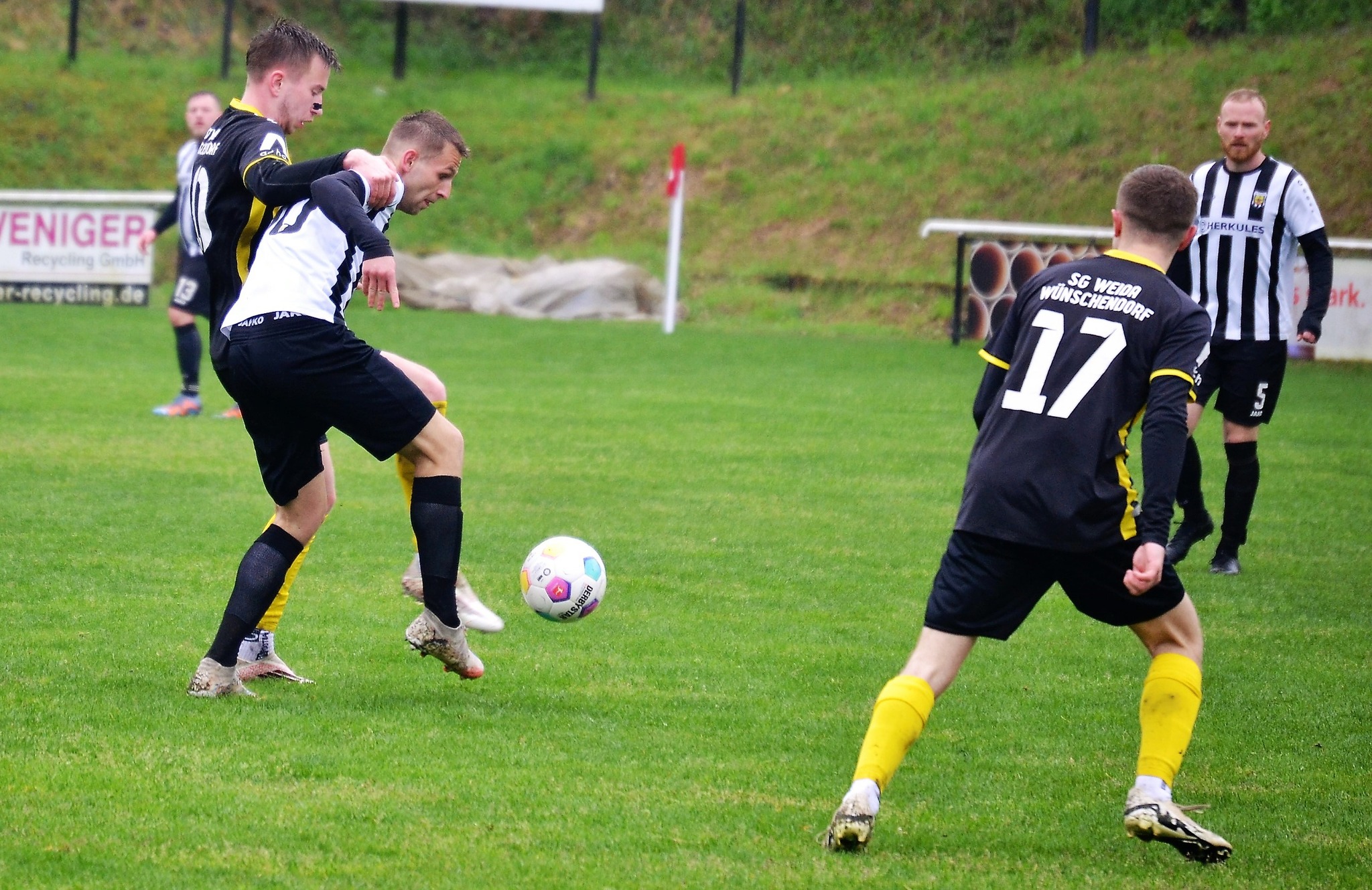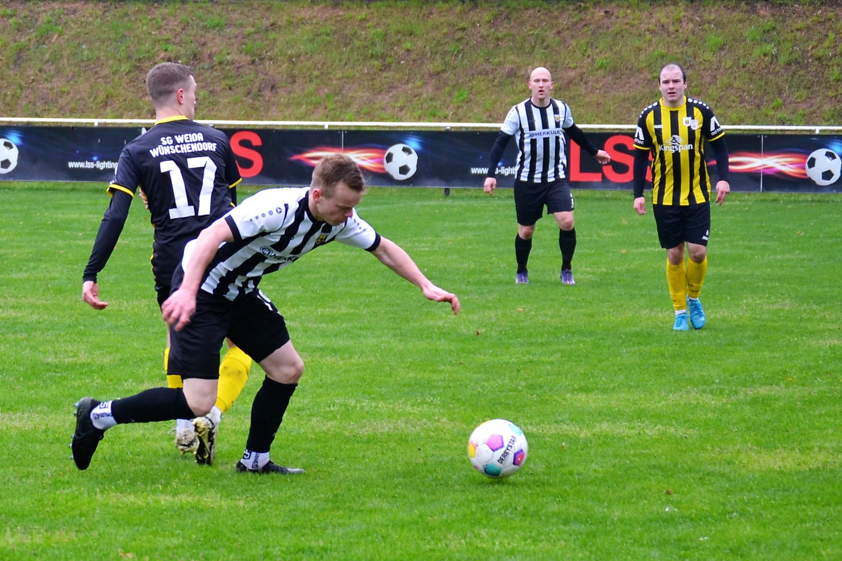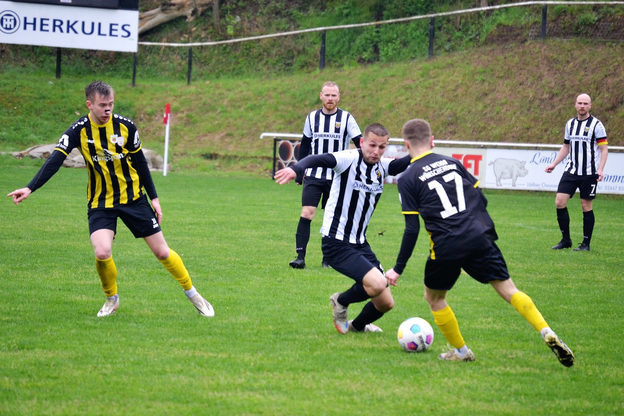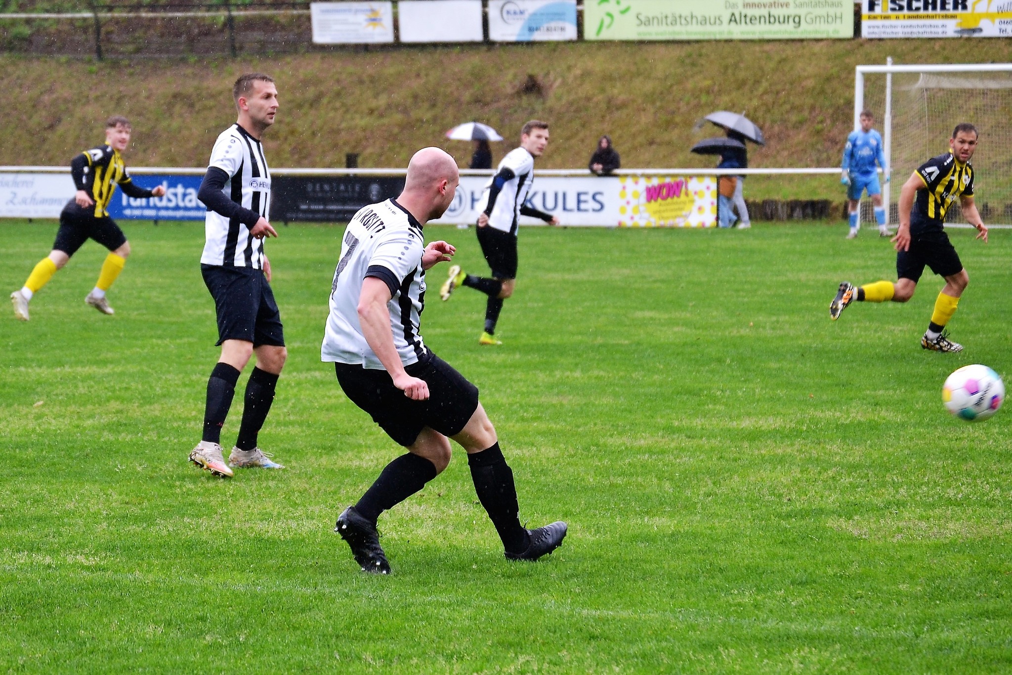 Bei nasskaltem Aprilwetter und im strömenden Regen setzte sich unsere erste Männermannschaft am vergangenen Sonntag gegen den Tabellennachbarn von der SG Thüringen Weida II klar mit 5:1 (3:1) durch.